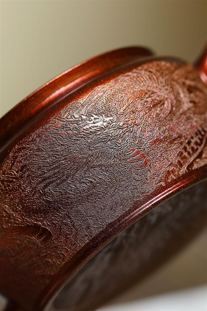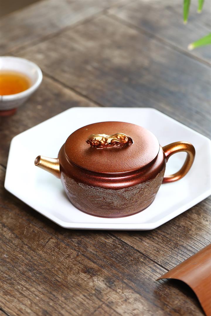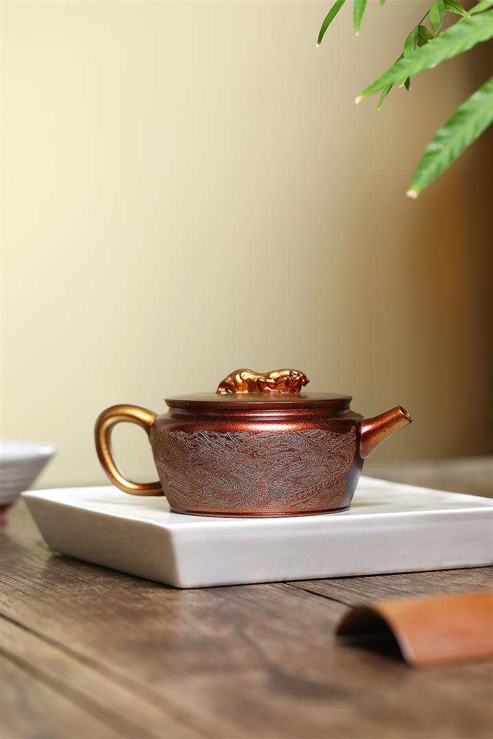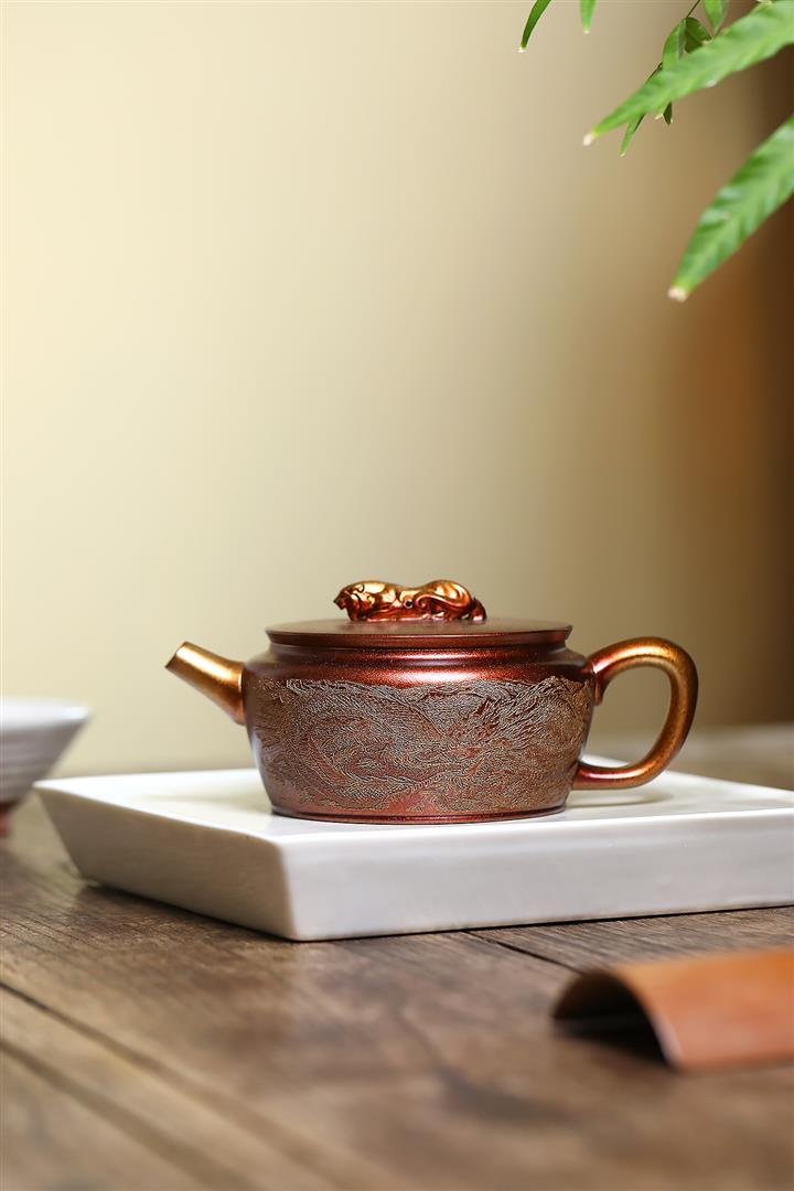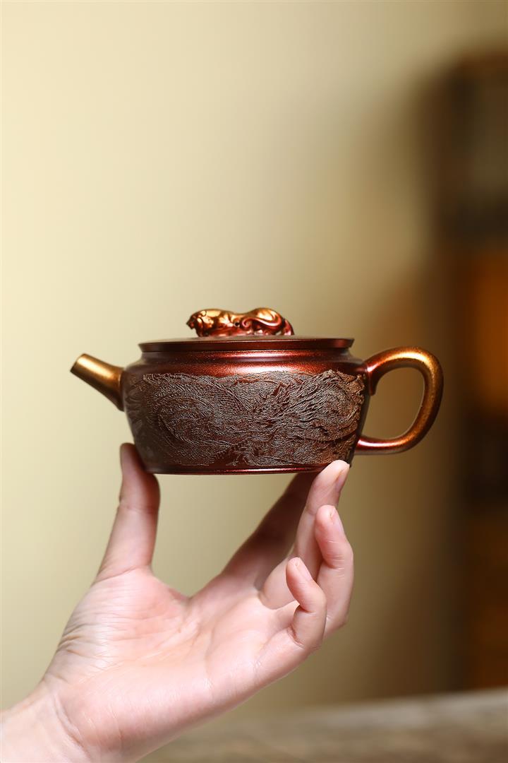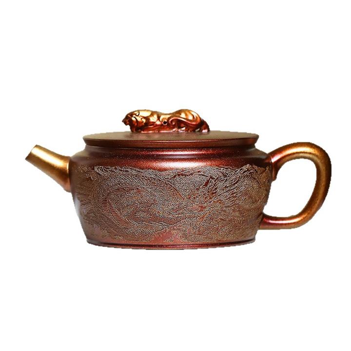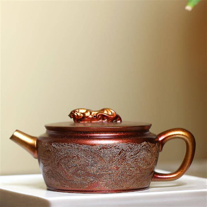 300cc原礦古銅泥滿刻萬象涵容茶壺POT8165
