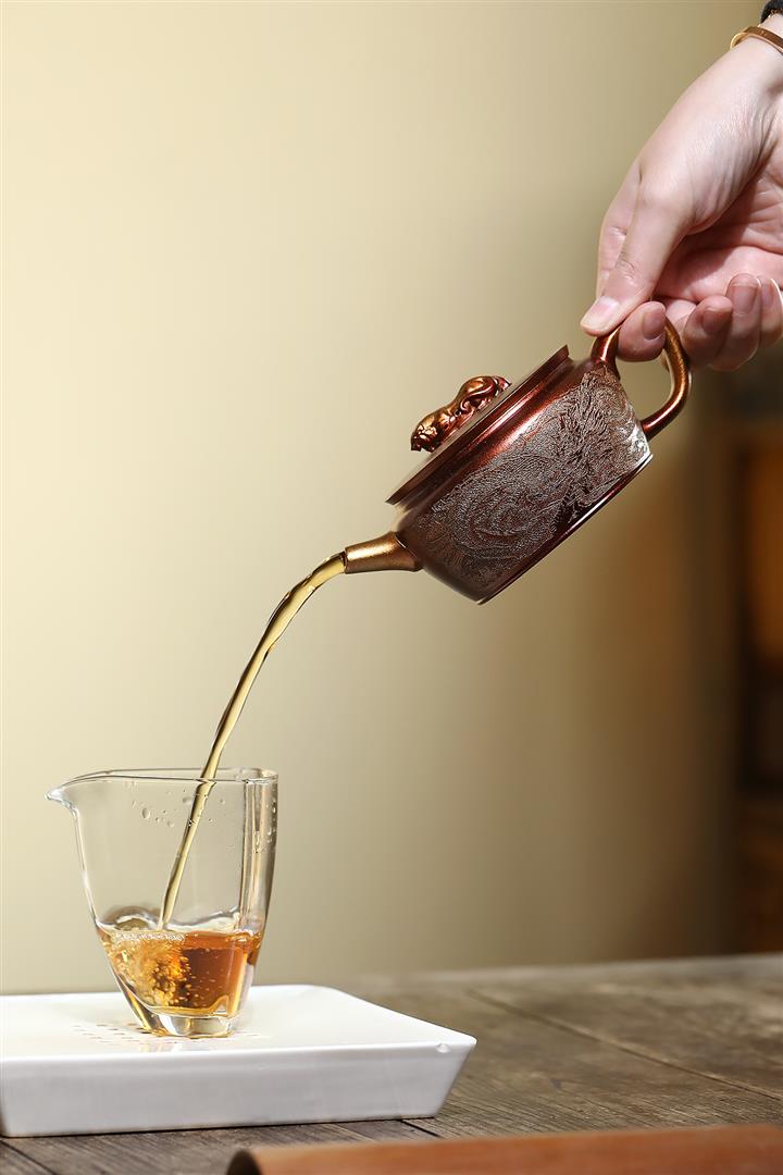 【泥料特點】砂土氣重,似淳實農民,日久使用,漸露鋒芒,養成變化,溫潤莊重。紫砂是壹種雙重氣孔結構的多孔性材質,氣孔微細,密度高。用紫砂壺沏茶,不失原味,且香不渙散,得茶之真香真味。紫砂使用越久,壺身色澤越發光亮照人,氣韻溫雅。紫砂壺長久使用器身會因撫摸擦拭,變得越發溫潤光澤。