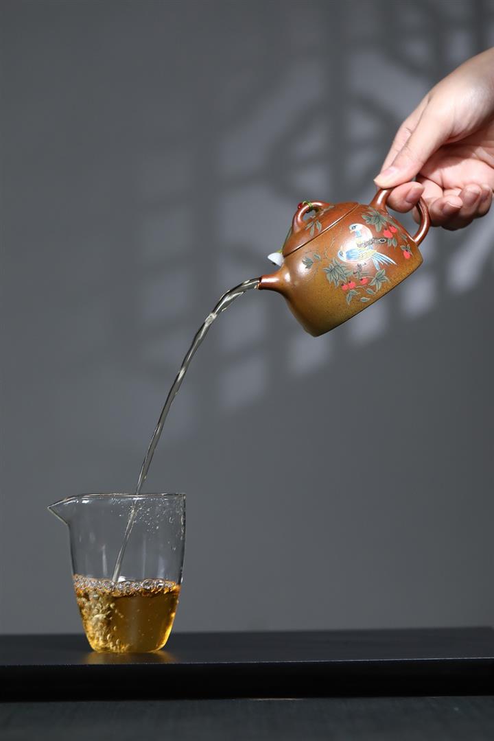 【泥料特點】砂土氣重,似淳實農民,日久使用,漸露鋒芒,養成變化,溫潤莊重。紫砂是壹種雙重氣孔結構的多孔性材質,氣孔微細,密度高。用紫砂壺沏茶,不失原味,且香不渙散,得茶之真香真味。紫砂使用越久,壺身色澤越發光亮照人,氣韻溫雅。紫砂壺長久使用器身會因撫摸擦拭,變得越發溫潤光澤。