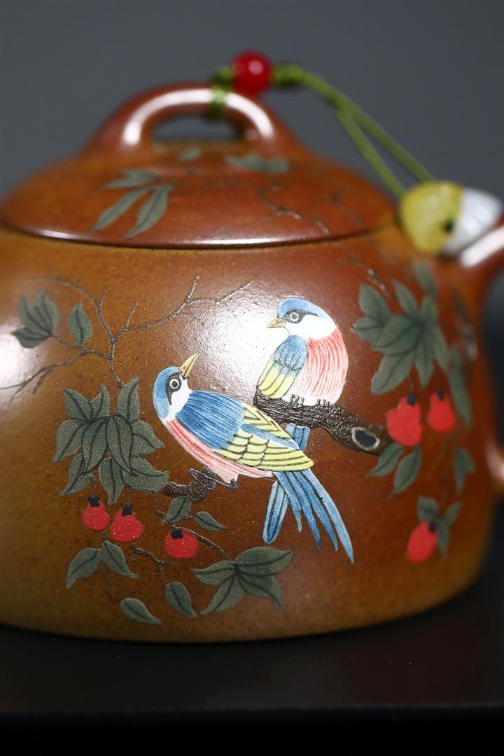 原礦紫茄泥純手工琺瑯彩宛蝶茶壺POT6862茶壺POT6862