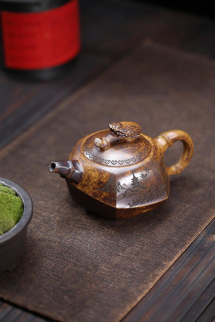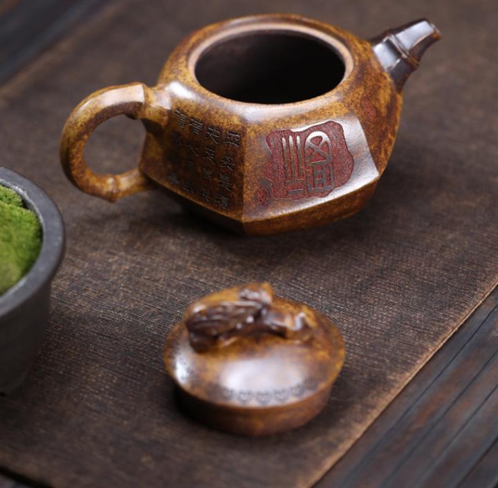 原礦紫泥六方仿古紫砂壺POT4364