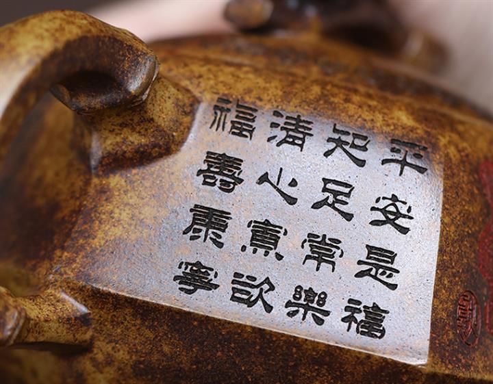 【泥料特點】砂土氣重,似淳實農民,日久使用,漸露鋒芒,養成變化,溫潤莊重。紫砂是壹種雙重氣孔結構的多孔性材質,氣孔微細,密度高。用紫砂壺沏茶,不失原味,且香不渙散,得茶之真香真味。紫砂使用越久,壺身色澤越發光亮照人,氣韻溫雅。紫砂壺長久使用器身會因撫摸擦拭,變得越發溫潤光澤。