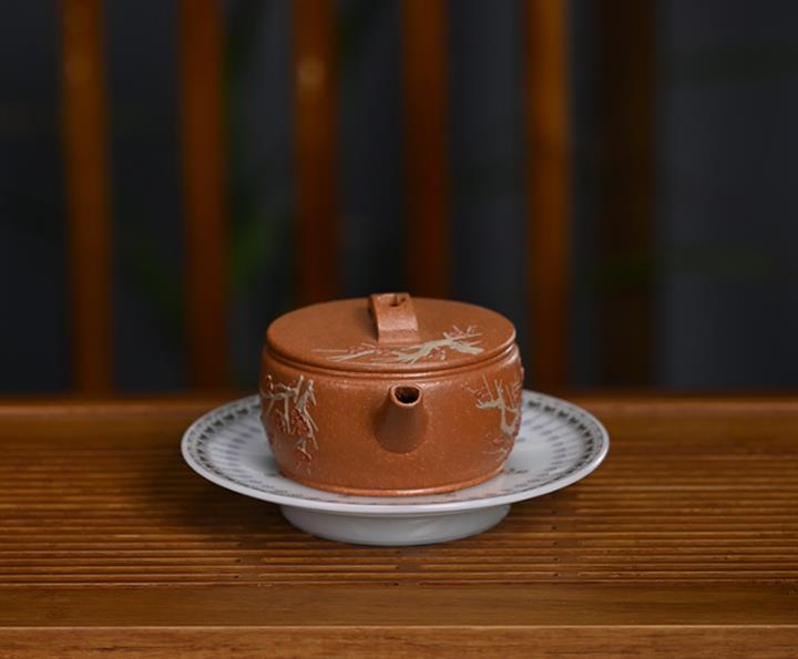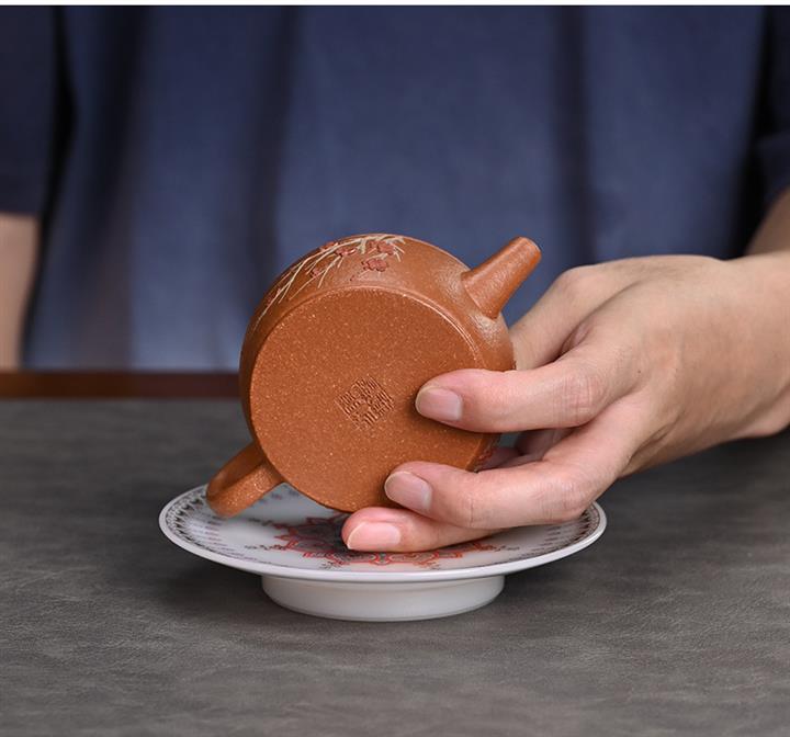 竹簡原礦豆沙青名家手刻宜興紫砂壺工堂pot3778