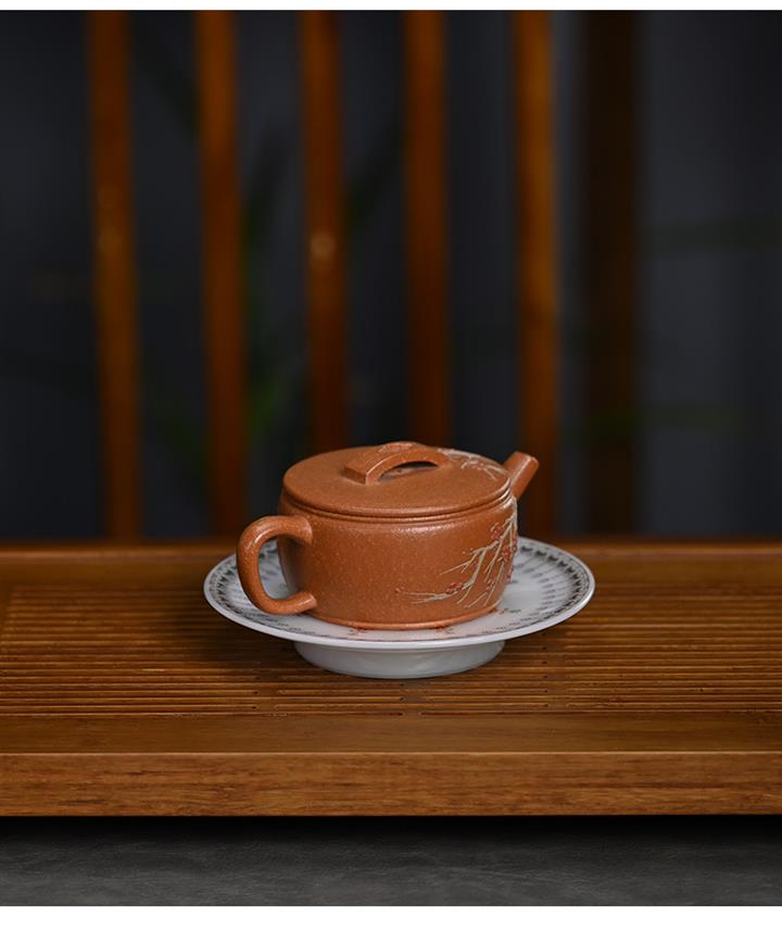 紫砂壺原礦段泥手工刻繪竹韻汲直茶壺功夫茶具pot3772