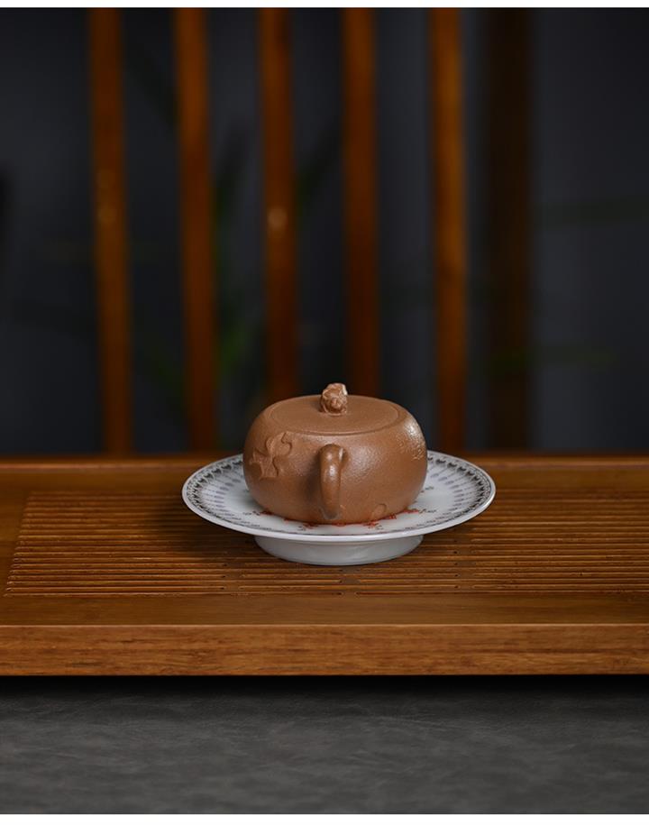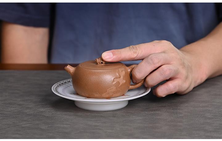【泥料特點】砂土氣重,似淳實農民,日久使用,漸露鋒芒,養成變化,溫潤莊重。紫砂是壹種雙重氣孔結構的多孔性材質,氣孔微細,密度高。用紫砂壺沏茶,不失原味,且香不渙散,得茶之真香真味。紫砂使用越久,壺身色澤越發光亮照人,氣韻溫雅。紫砂壺長久使用器身會因撫摸擦拭,變得越發溫潤光澤。
