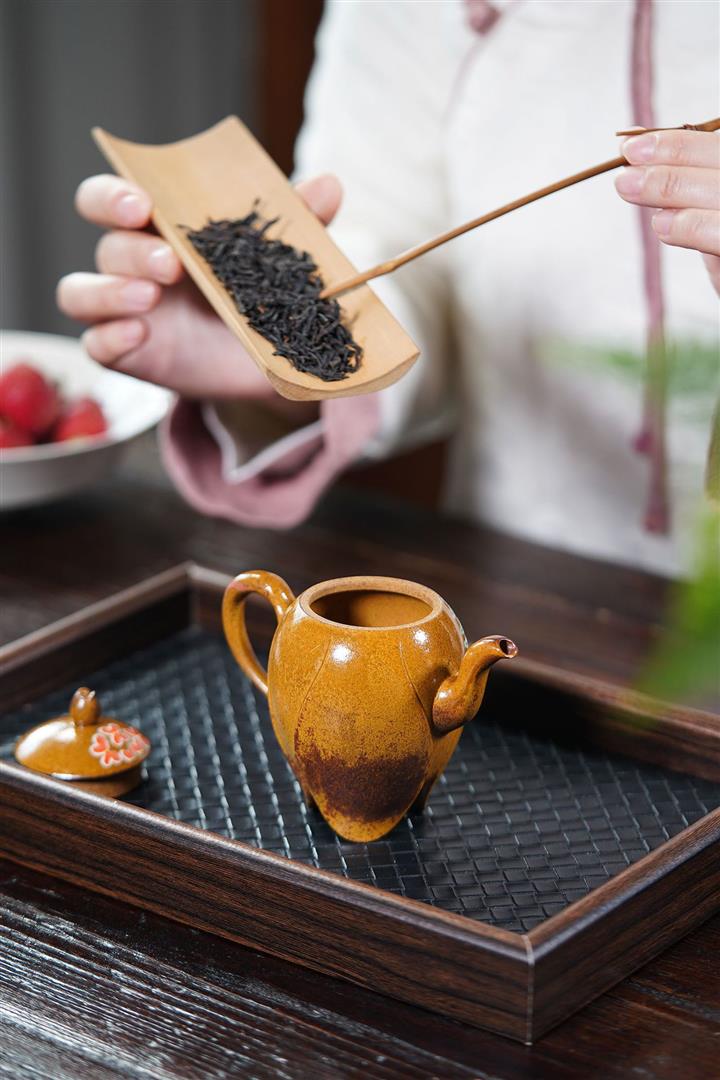 【泥料特點】砂土氣重,似淳實農民,日久使用,漸露鋒芒,養成變化,溫潤莊重。紫砂是壹種雙重氣孔結構的多孔性材質,氣孔微細,密度高。用紫砂壺沏茶,不失原味,且香不渙散,得茶之真香真味。紫砂使用越久,壺身色澤越發光亮照人,氣韻溫雅。紫砂壺長久使用器身會因撫摸擦拭,變得越發溫潤光澤。