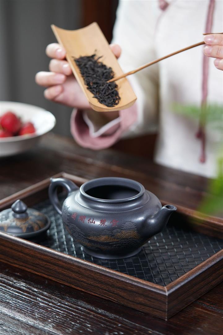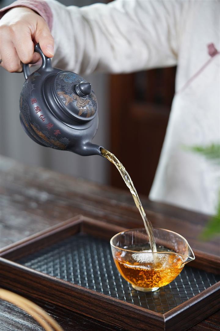 【泥料特點】砂土氣重,似淳實農民,日久使用,漸露鋒芒,養成變化,溫潤莊重。紫砂是壹種雙重氣孔結構的多孔性材質,氣孔微細,密度高。用紫砂壺沏茶,不失原味,且香不渙散,得茶之真香真味。紫砂使用越久,壺身色澤越發光亮照人,氣韻溫雅。紫砂壺長久使用器身會因撫摸擦拭,變得越發溫潤光澤。