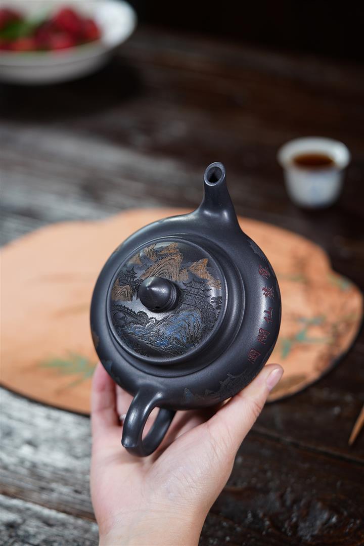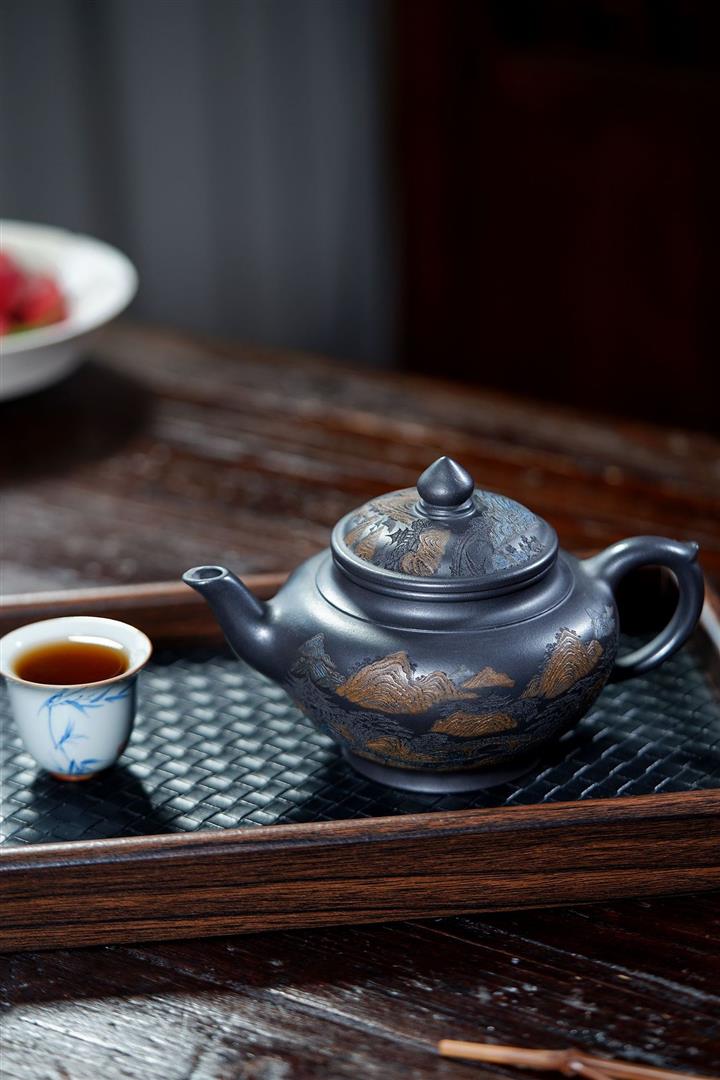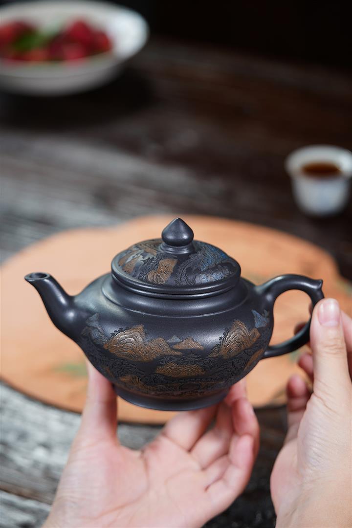 原礦朱泥焐灰圓珠名家手制茶壺POT7775