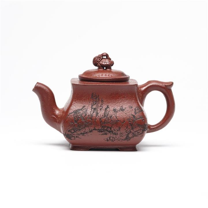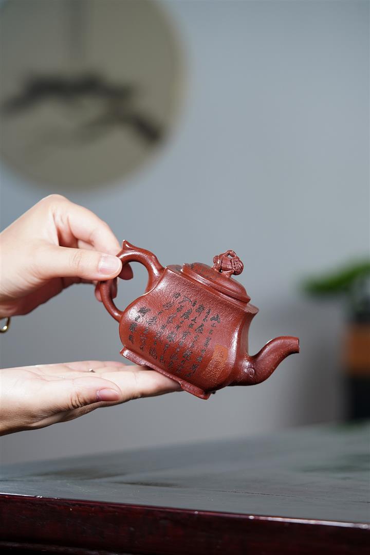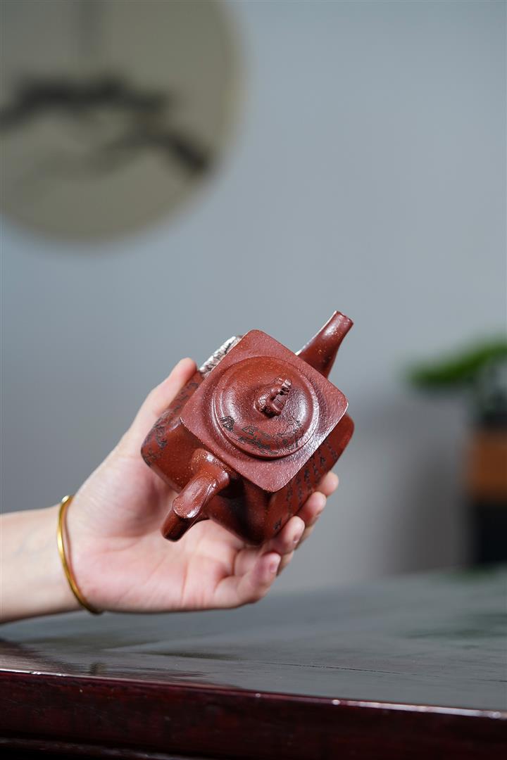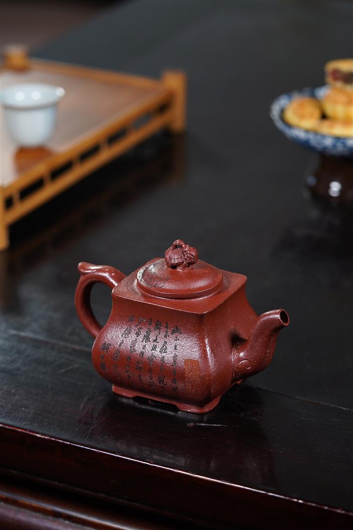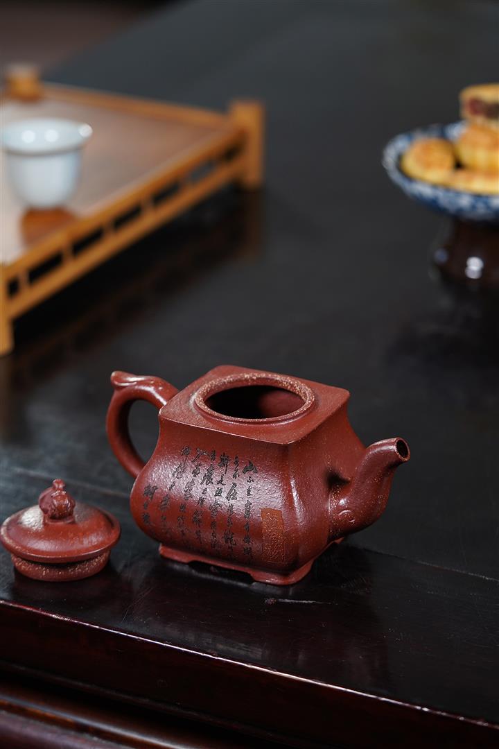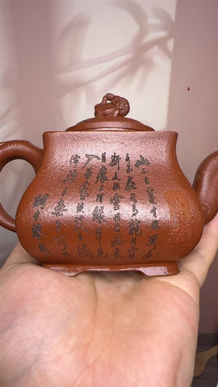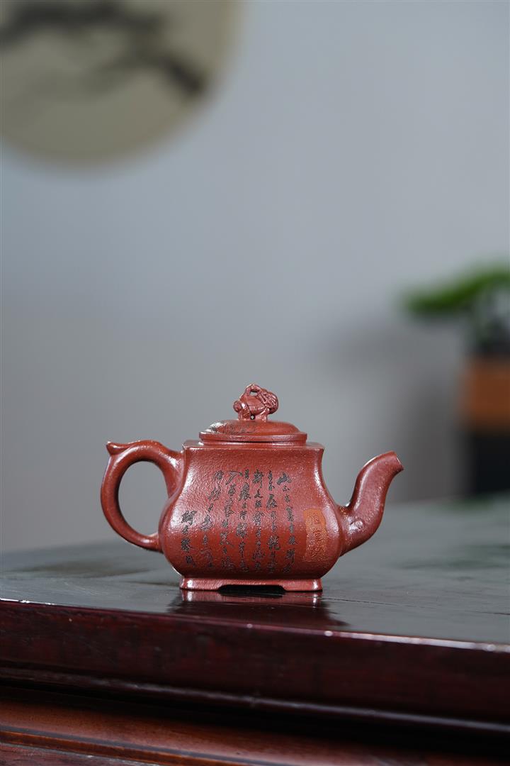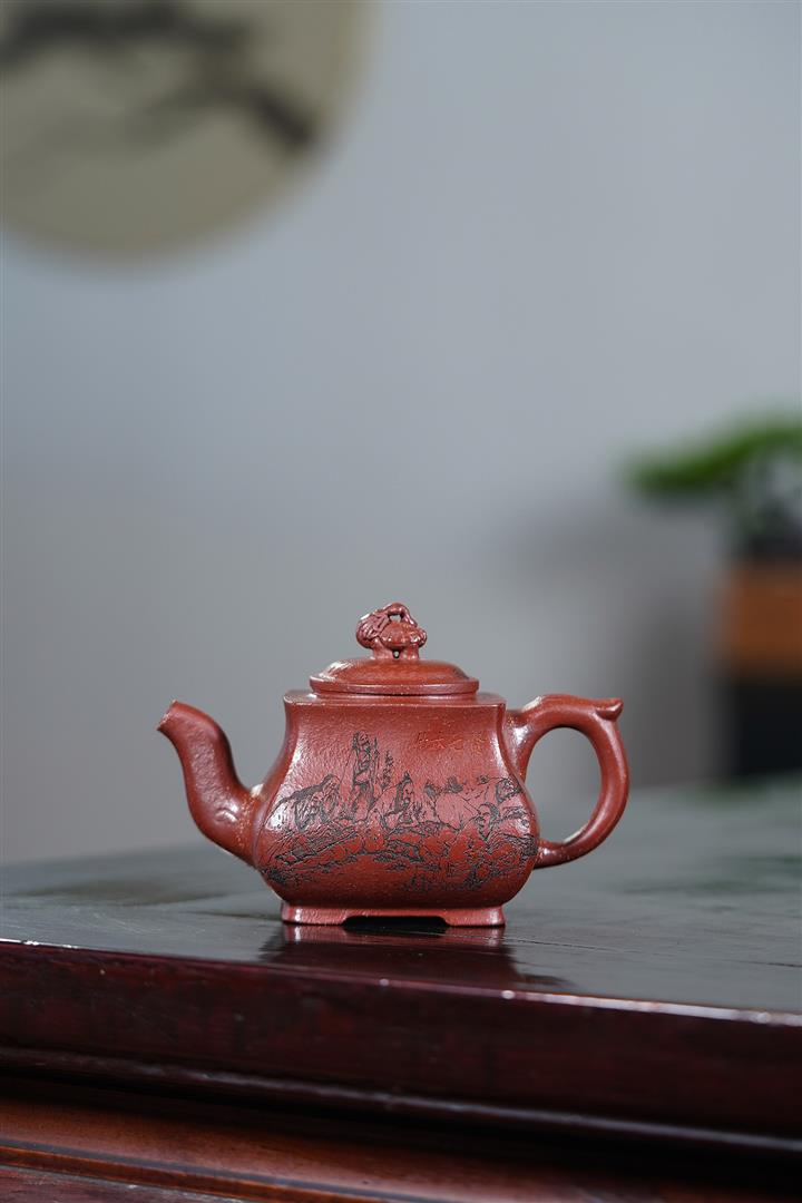 【泥料特點】砂土氣重,似淳實農民,日久使用,漸露鋒芒,養成變化,溫潤莊重。紫砂是壹種雙重氣孔結構的多孔性材質,氣孔微細,密度高。用紫砂壺沏茶,不失原味,且香不渙散,得茶之真香真味。紫砂使用越久,壺身色澤越發光亮照人,氣韻溫雅。紫砂壺長久使用器身會因撫摸擦拭,變得越發溫潤光澤。