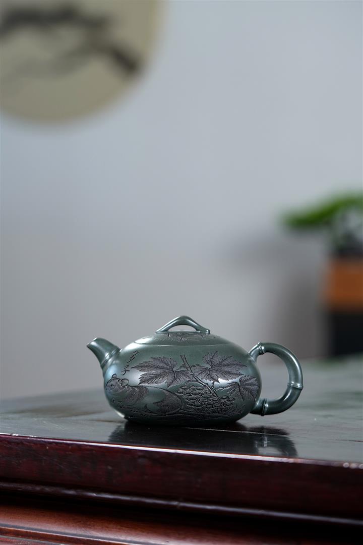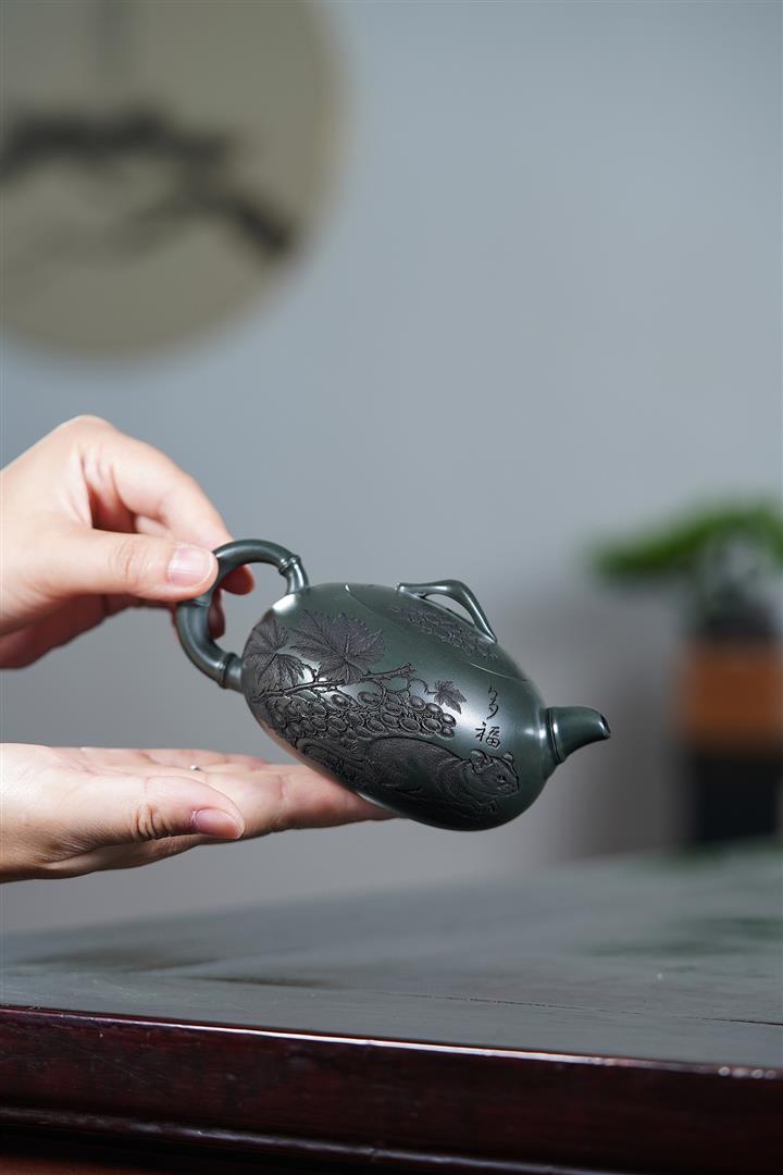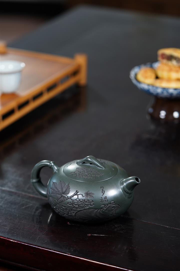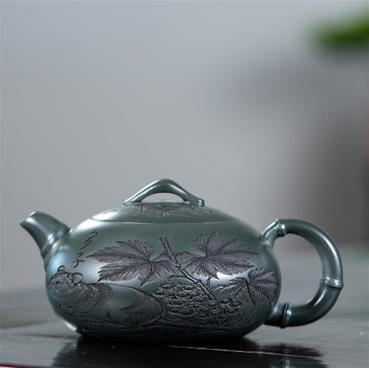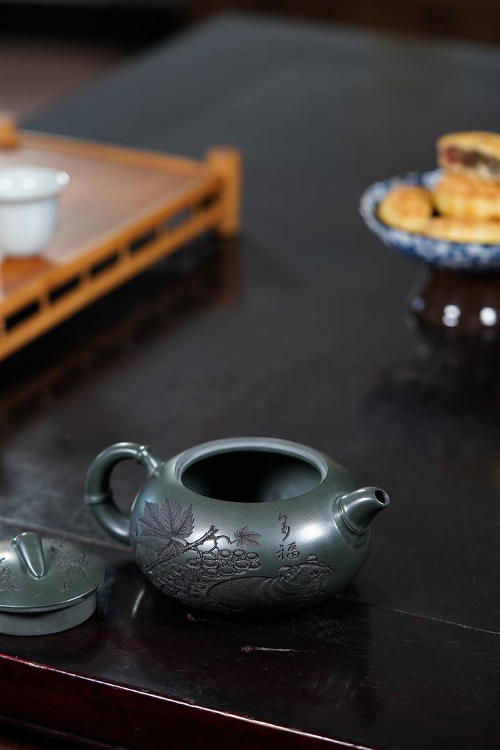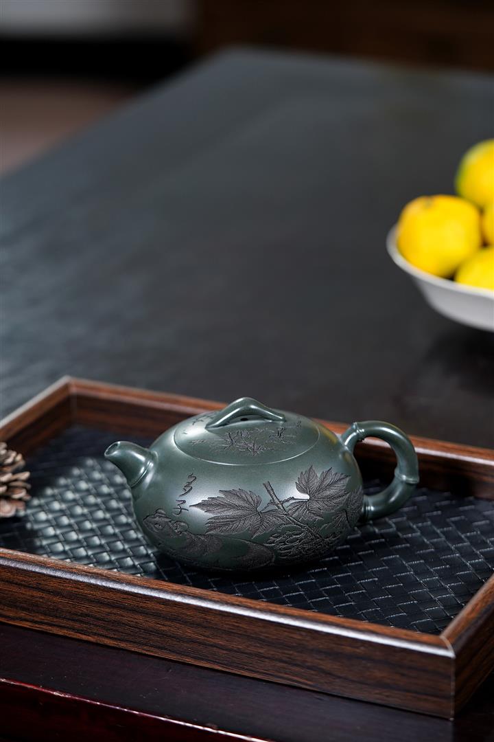 320cc原礦綠泥滿刻秋實秋趣茶壺POT8168