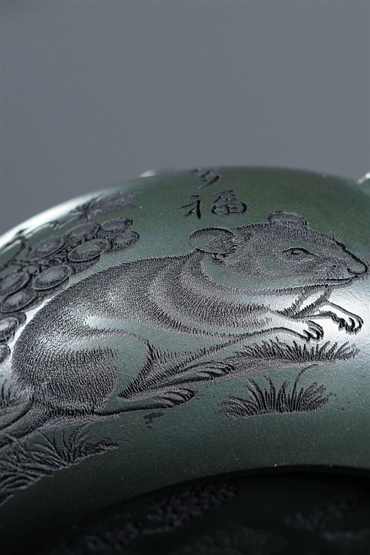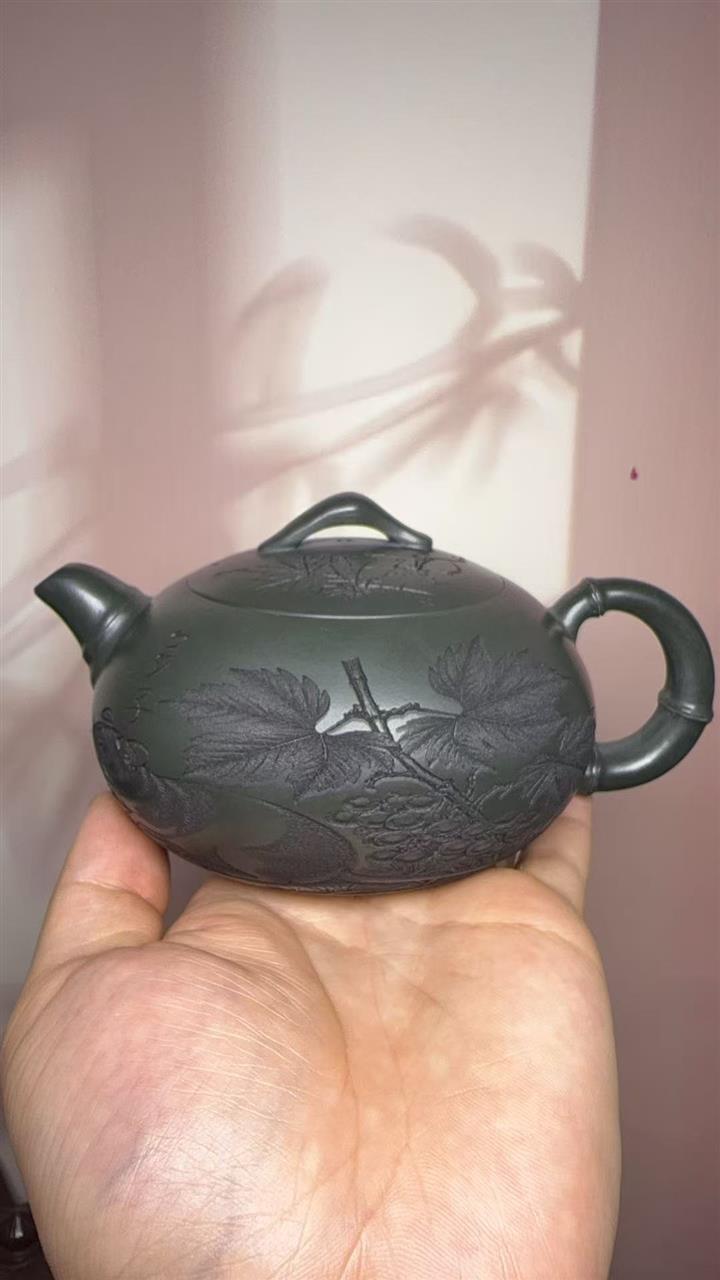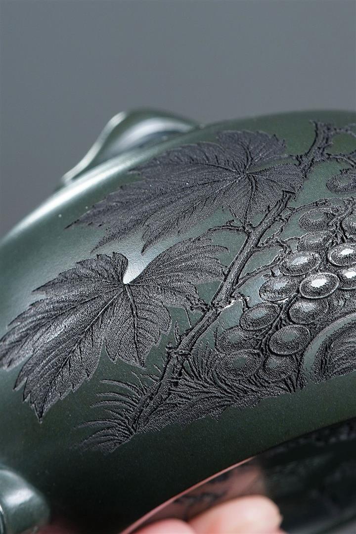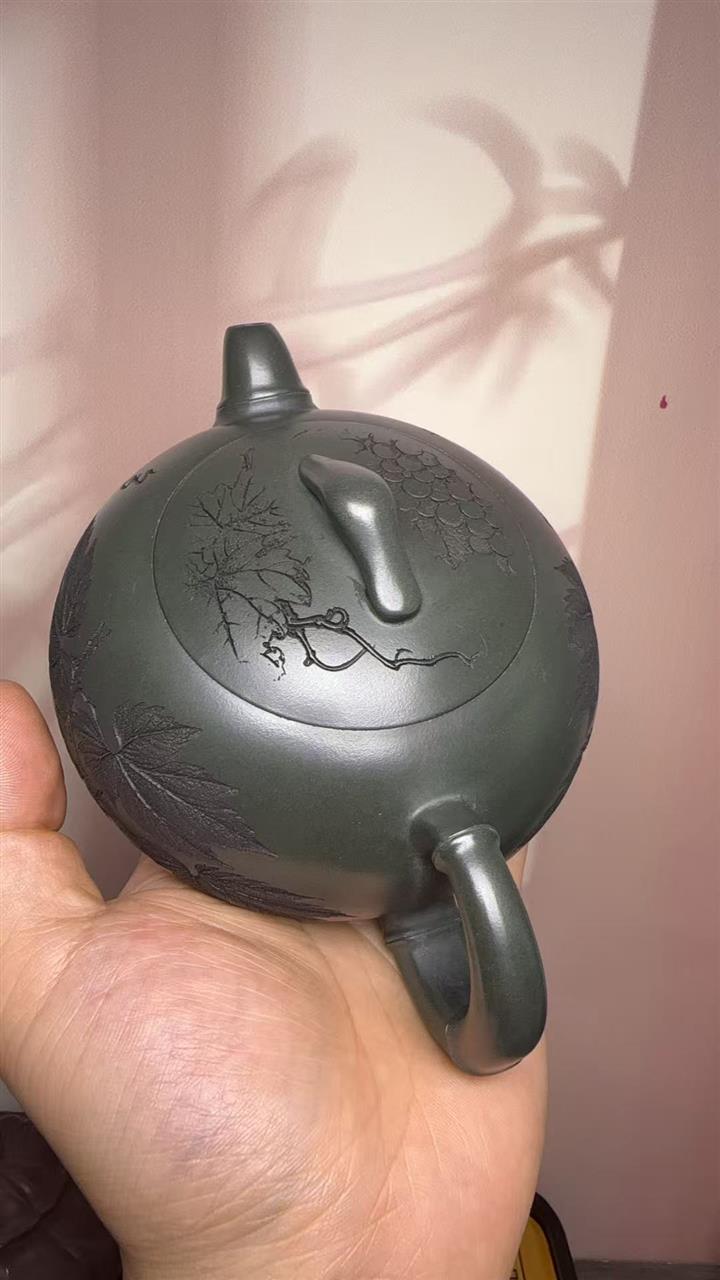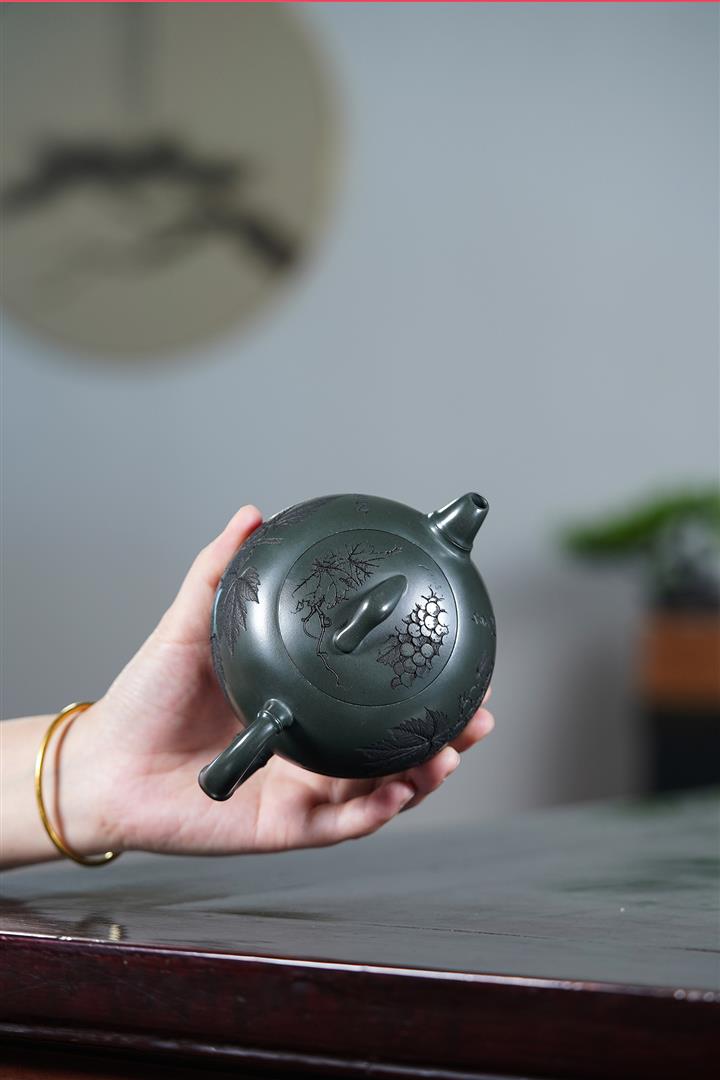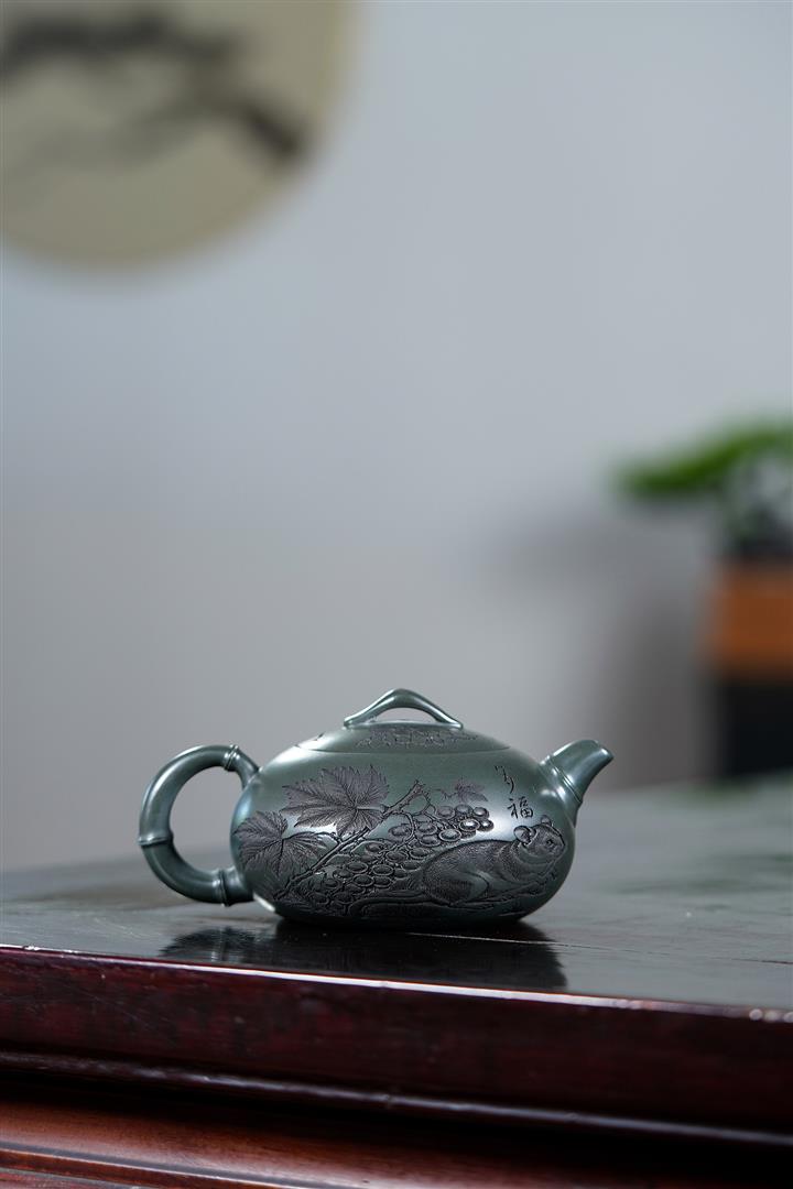 320cc原礦綠泥滿刻秋實秋趣茶壺POT8168