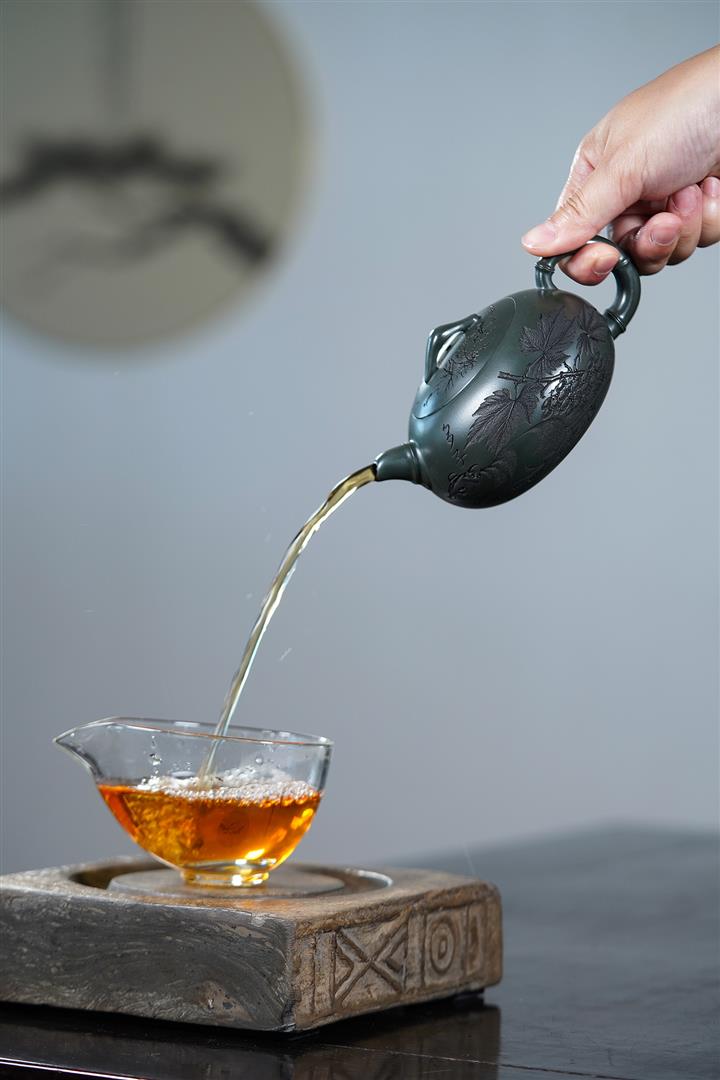 【泥料特點】砂土氣重,似淳實農民,日久使用,漸露鋒芒,養成變化,溫潤莊重。紫砂是壹種雙重氣孔結構的多孔性材質,氣孔微細,密度高。用紫砂壺沏茶,不失原味,且香不渙散,得茶之真香真味。紫砂使用越久,壺身色澤越發光亮照人,氣韻溫雅。紫砂壺長久使用器身會因撫摸擦拭,變得越發溫潤光澤。