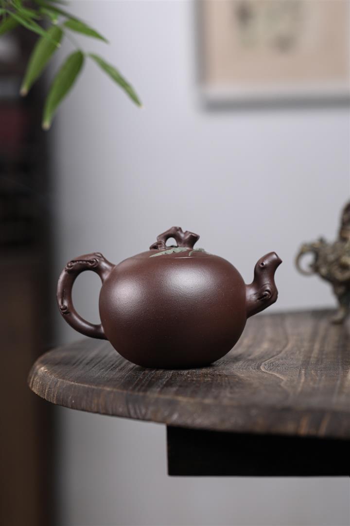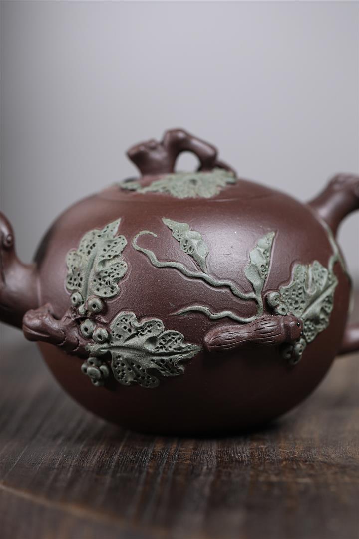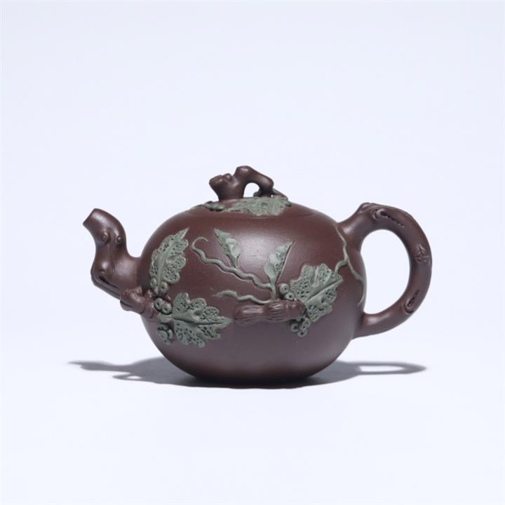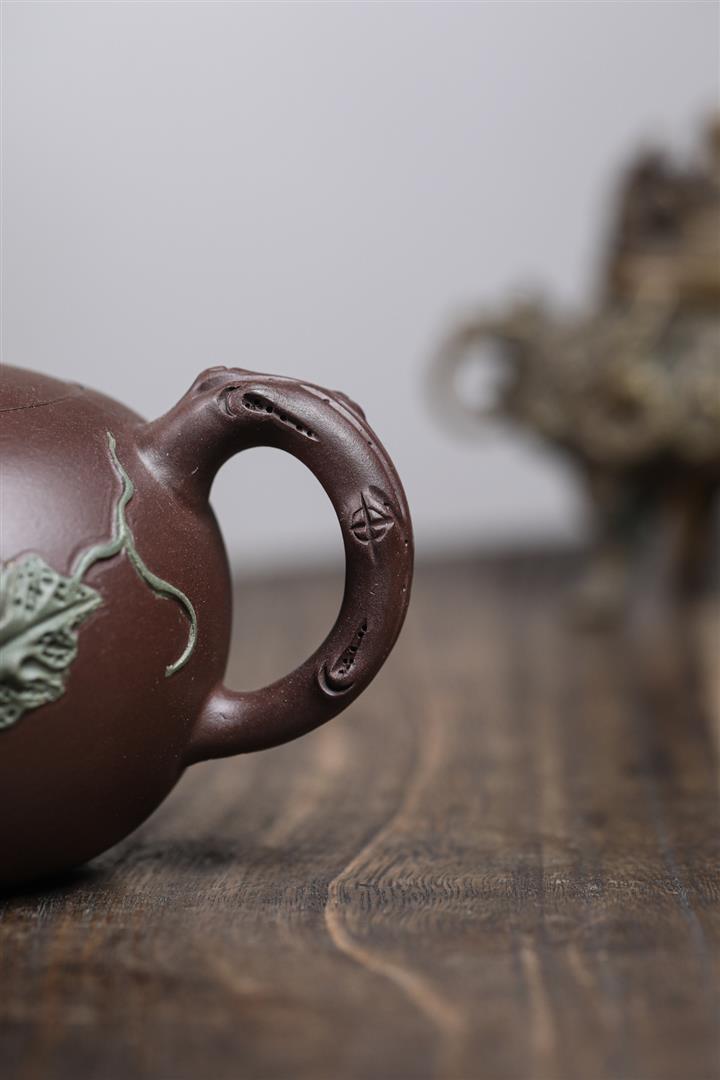 原礦翡翠綠泥繪高石瓢紫砂壺POT5498