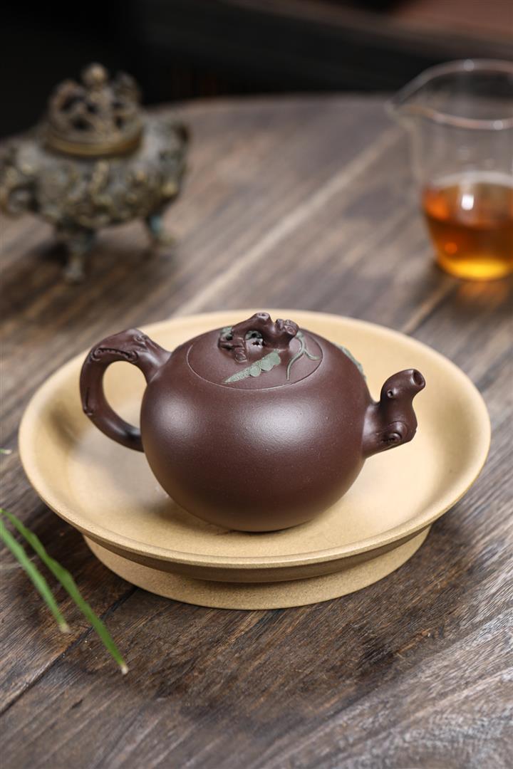 【泥料特點】砂土氣重,似淳實農民,日久使用,漸露鋒芒,養成變化,溫潤莊重。紫砂是壹種雙重氣孔結構的多孔性材質,氣孔微細,密度高。用紫砂壺沏茶,不失原味,且香不渙散,得茶之真香真味。紫砂使用越久,壺身色澤越發光亮照人,氣韻溫雅。紫砂壺長久使用器身會因撫摸擦拭,變得越發溫潤光澤。