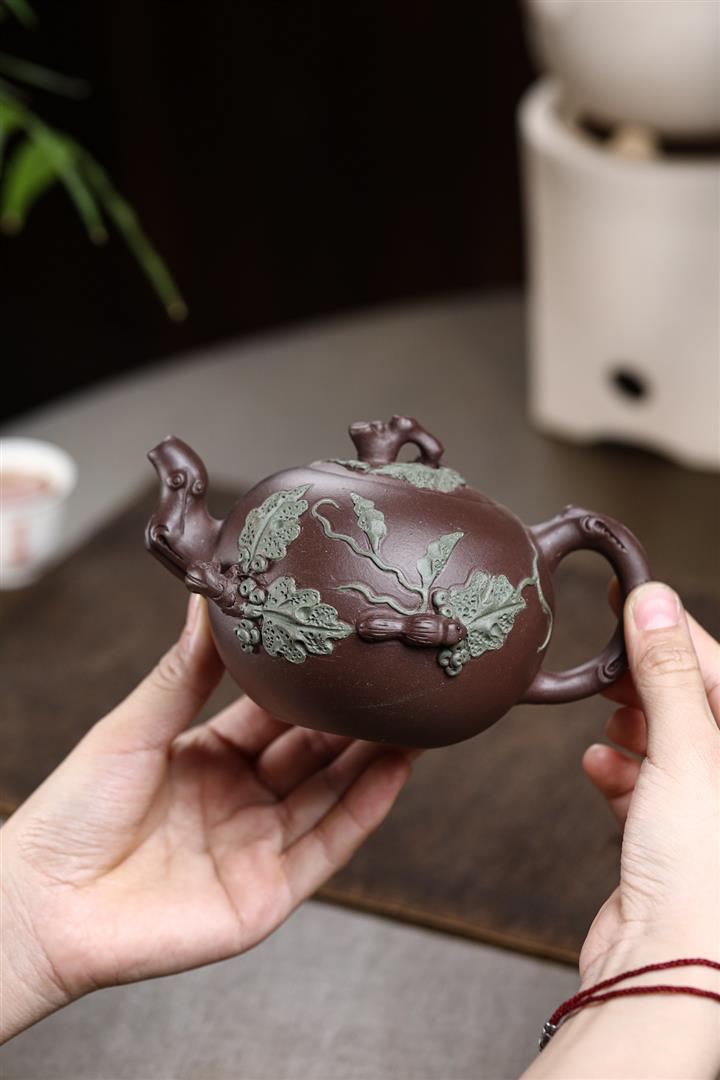 350cc 原礦紫泥松鼠葡萄茶壺POT8873