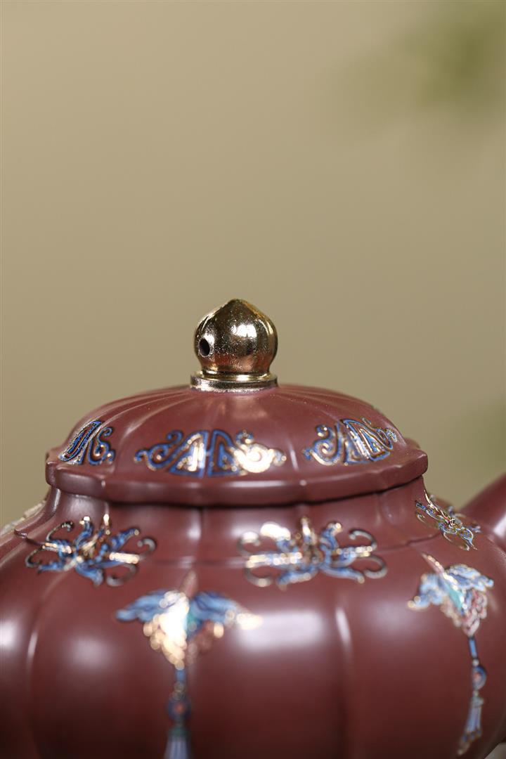 280cc原礦龍骨金砂蓮花提梁茶壺POT8970