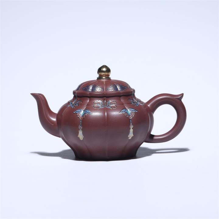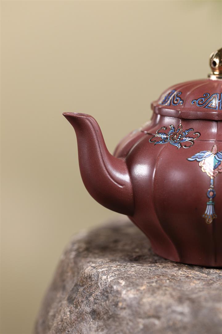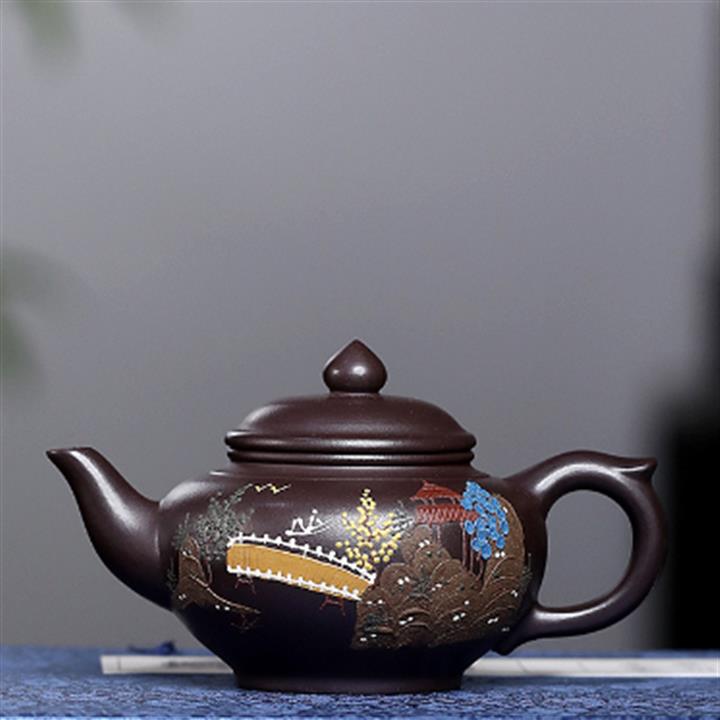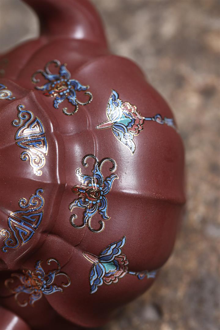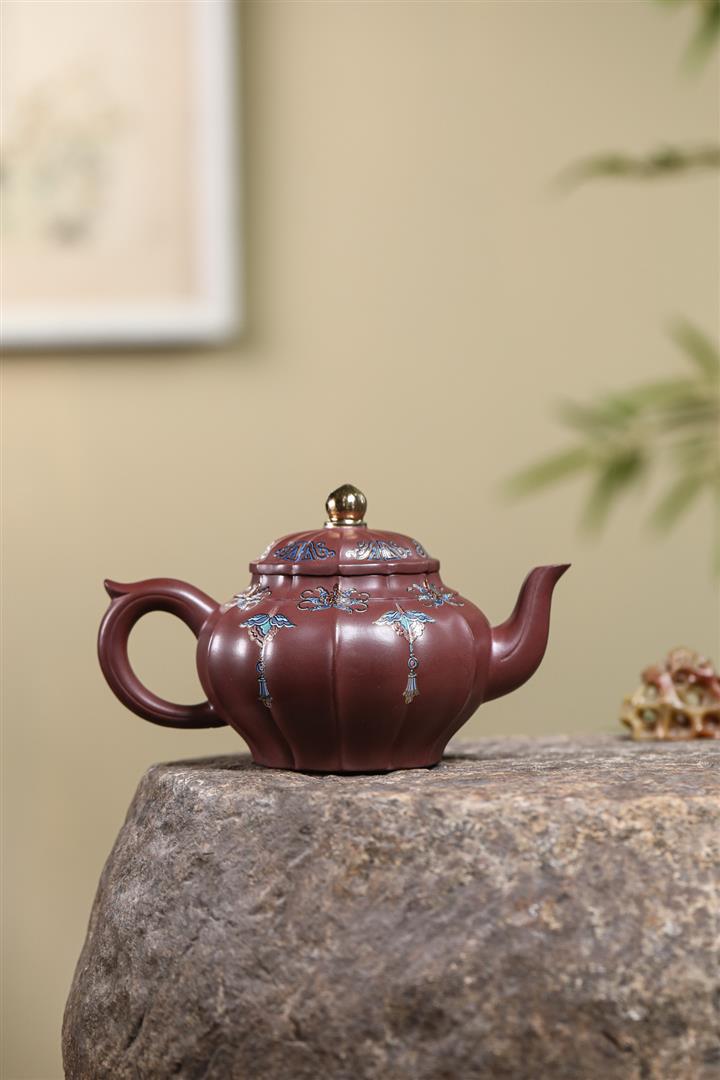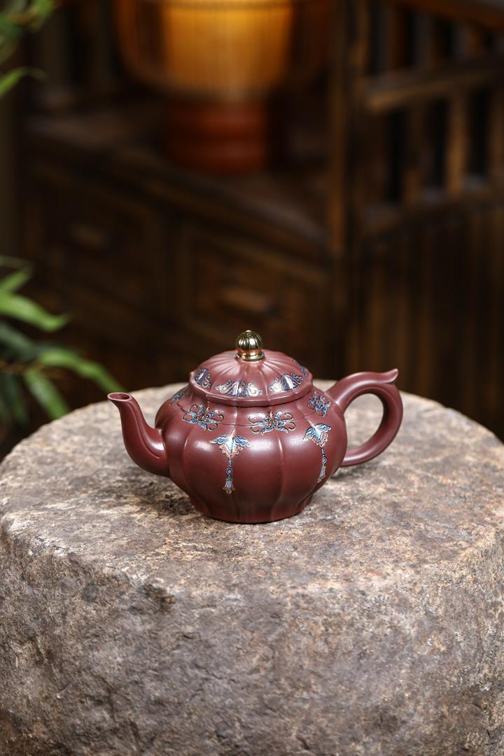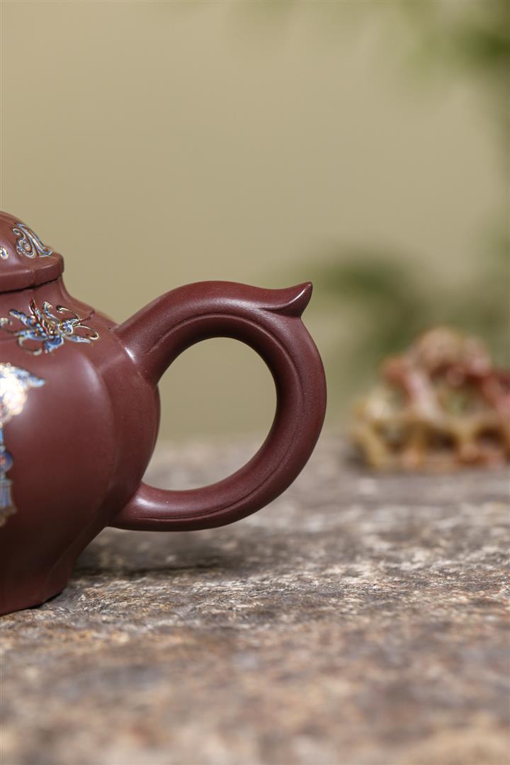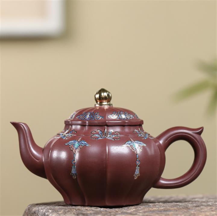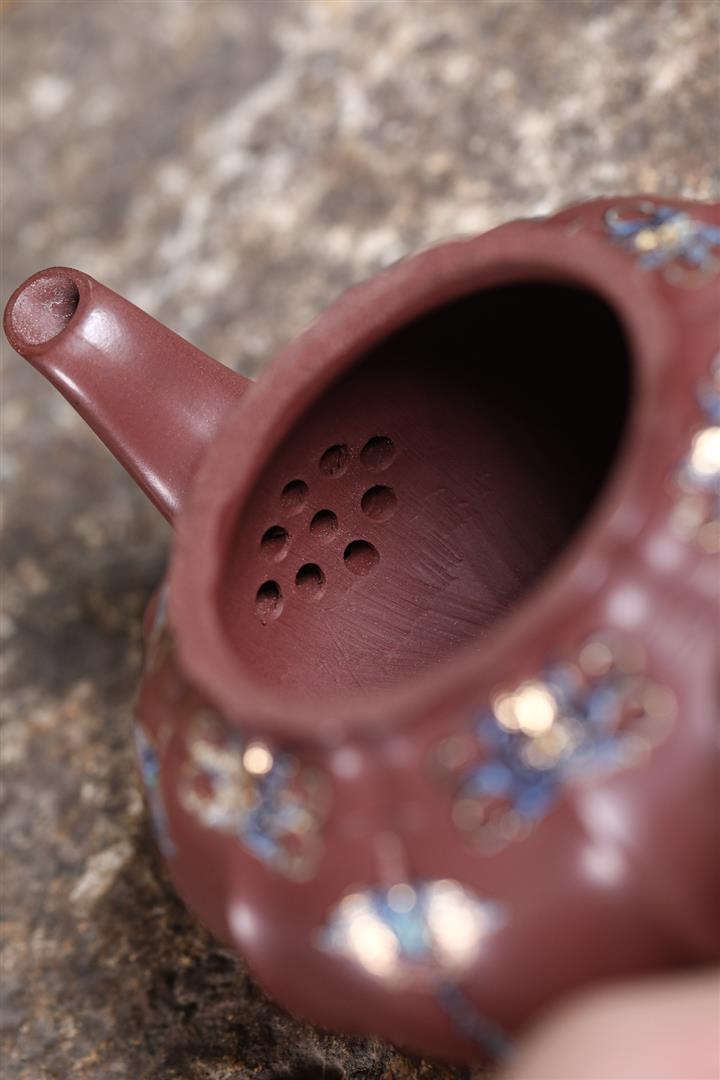 200cc原礦紫朱泥泥繪笑櫻茶壺POT8963