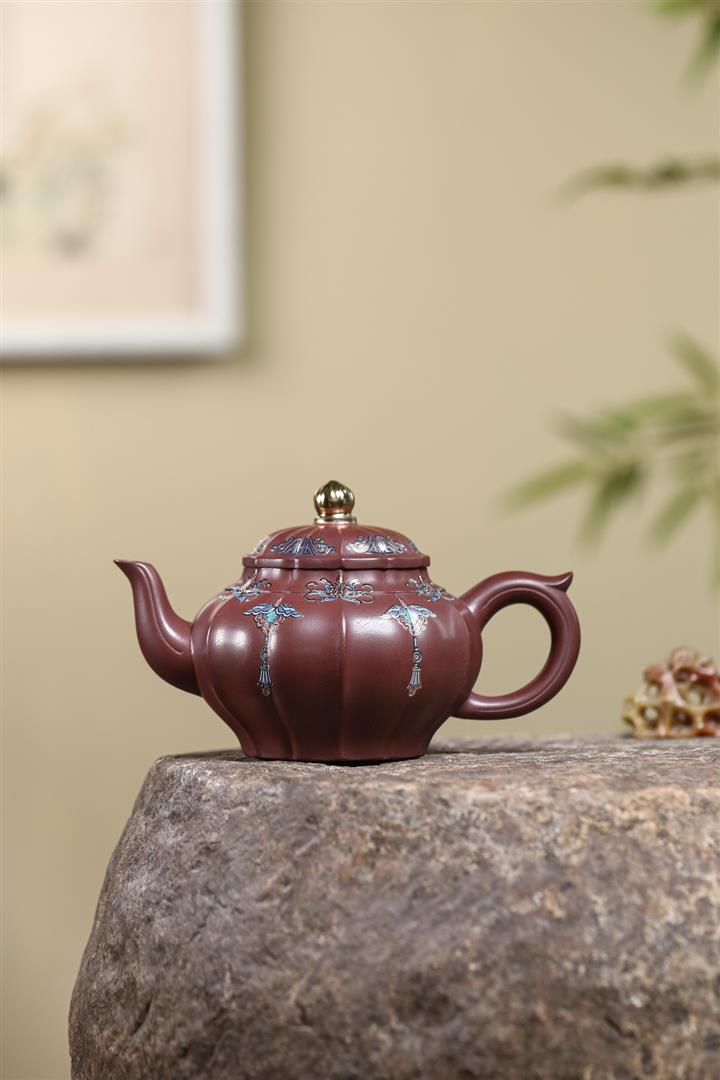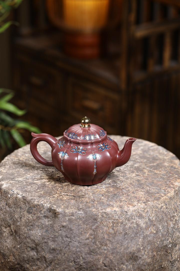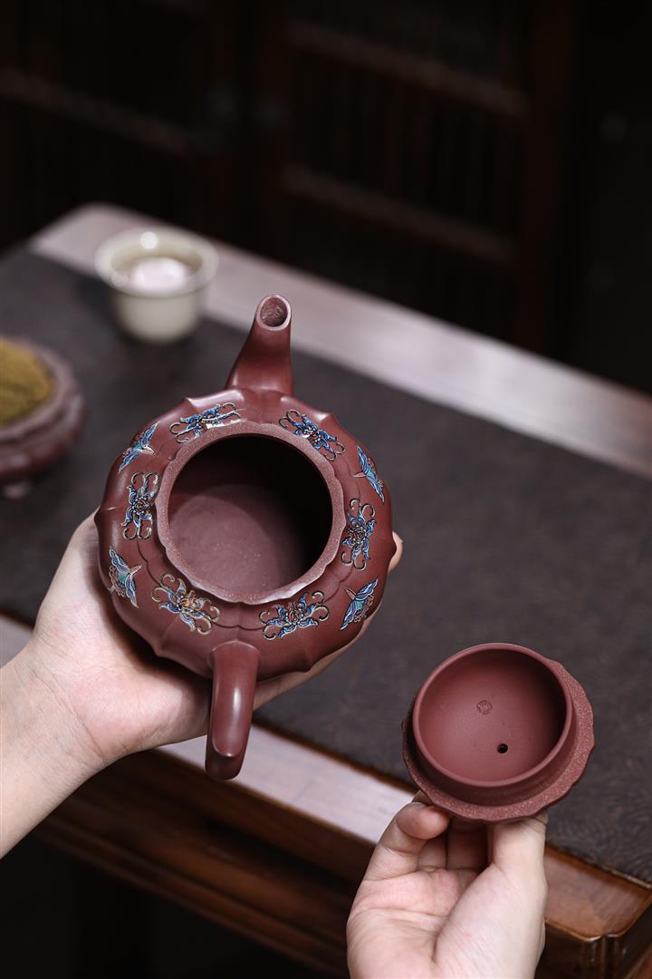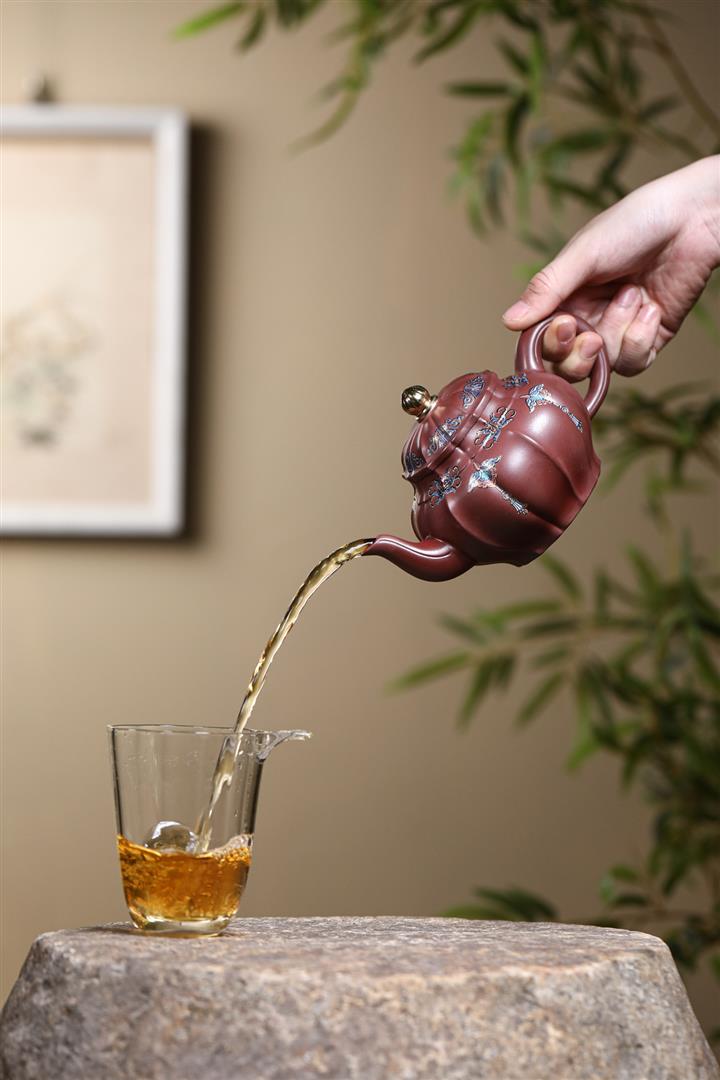【泥料特點】砂土氣重,似淳實農民,日久使用,漸露鋒芒,養成變化,溫潤莊重。紫砂是壹種雙重氣孔結構的多孔性材質,氣孔微細,密度高。用紫砂壺沏茶,不失原味,且香不渙散,得茶之真香真味。紫砂使用越久,壺身色澤越發光亮照人,氣韻溫雅。紫砂壺長久使用器身會因撫摸擦拭,變得越發溫潤光澤。