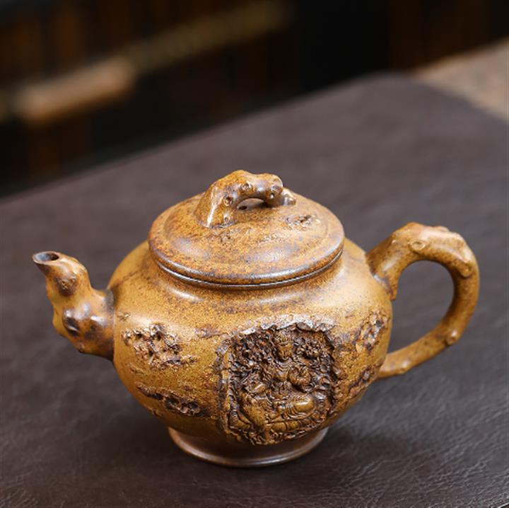 340cc原礦龍骨金砂報春-鏤空觀音茶壺POT8965