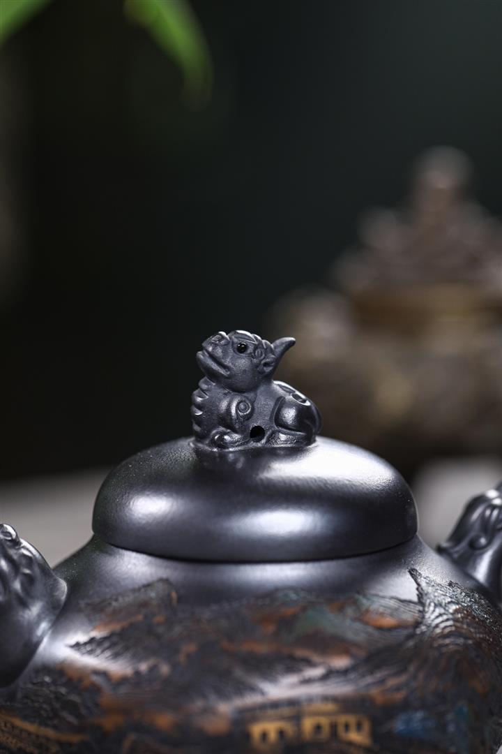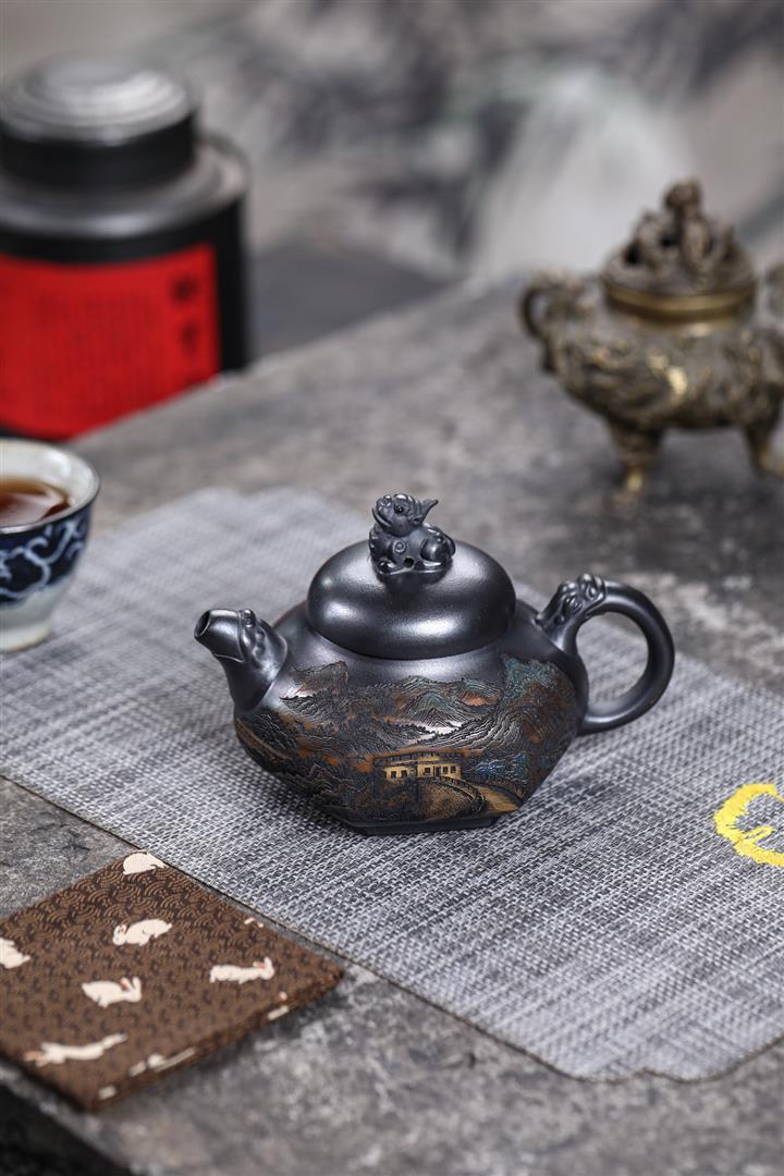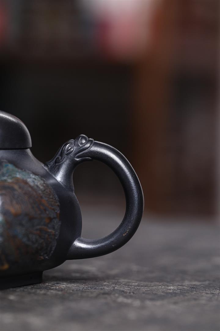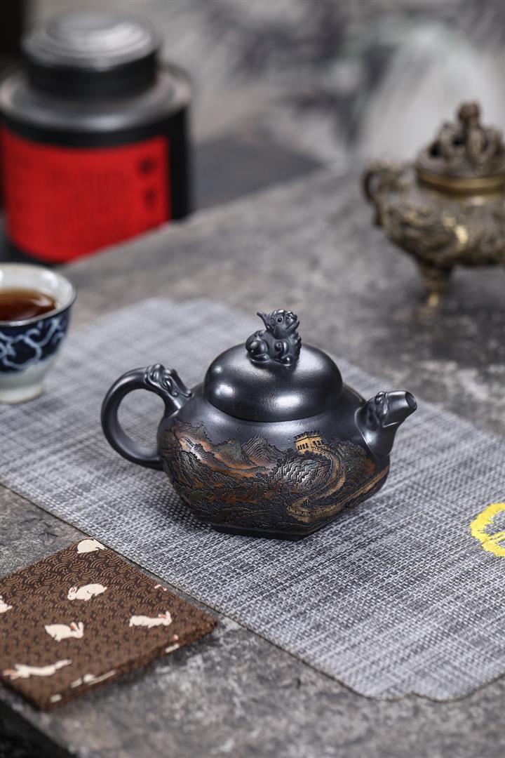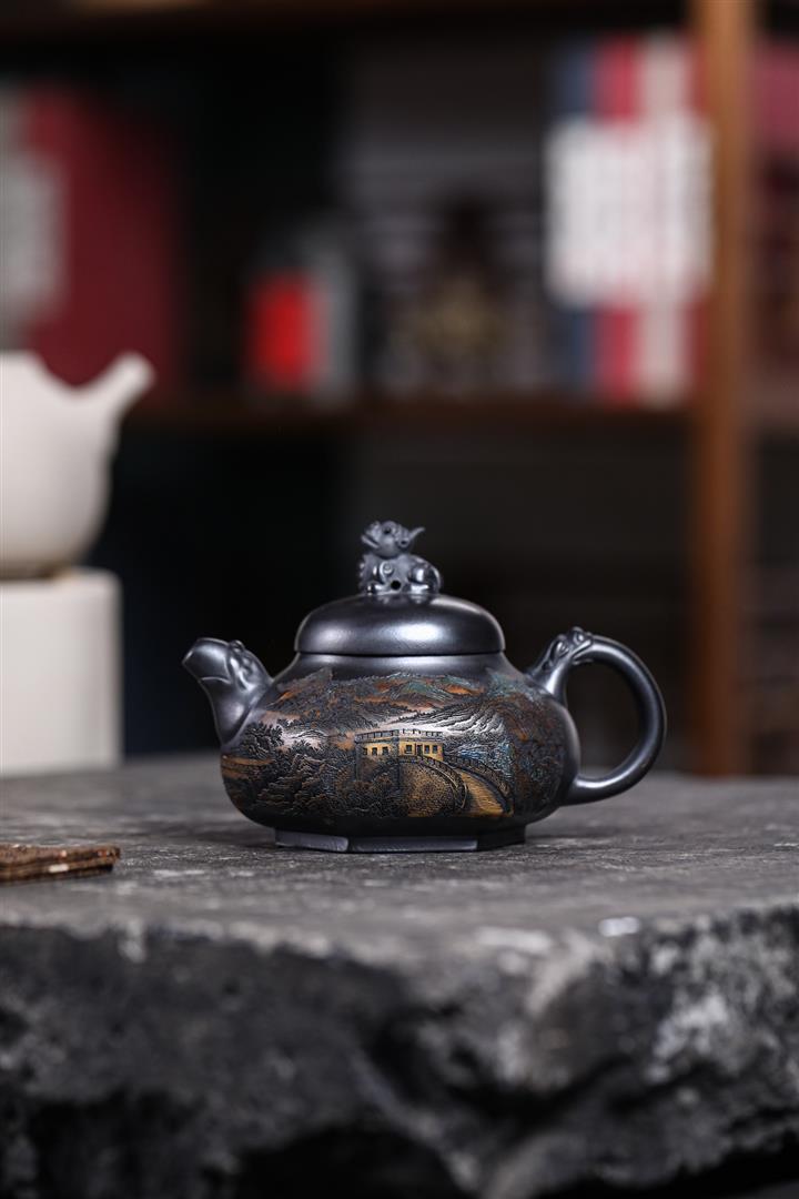 降坡泥茗飲柱礎茶壺純全手工刻字200毫升pot3863