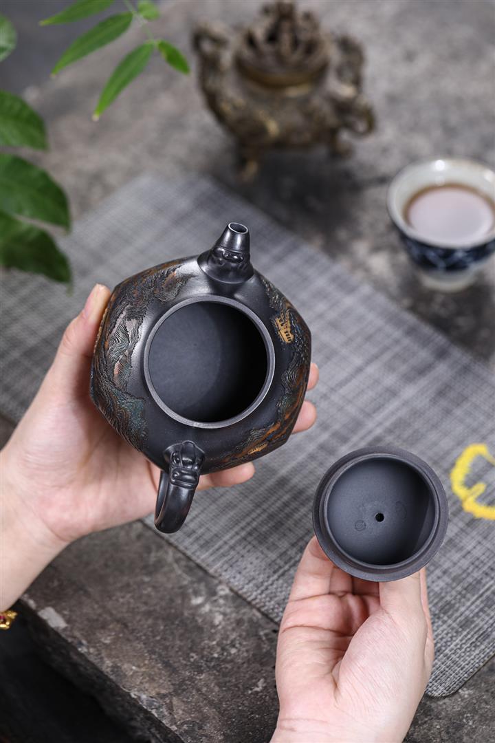 230cc原礦石黃泥彩繪六方潘壺茶壺POT8877
