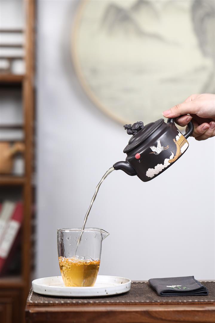 【泥料特點】砂土氣重,似淳實農民,日久使用,漸露鋒芒,養成變化,溫潤莊重。紫砂是壹種雙重氣孔結構的多孔性材質,氣孔微細,密度高。用紫砂壺沏茶,不失原味,且香不渙散,得茶之真香真味。紫砂使用越久,壺身色澤越發光亮照人,氣韻溫雅。紫砂壺長久使用器身會因撫摸擦拭,變得越發溫潤光澤。