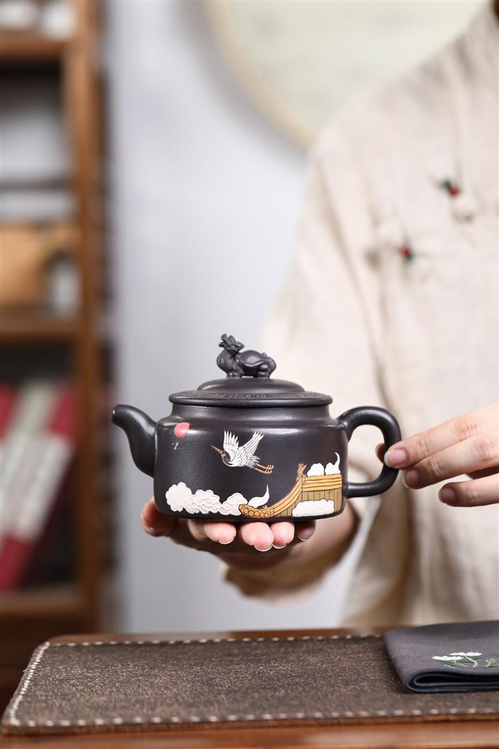 【作品介紹】此款壺形線條流暢,壺把,壺嘴,壺身壹氣呵成栩栩如生,是收藏把玩的好壺,泥料色澤古樸典雅,日久使用,漸露鋒芒,養成變化快,溫潤莊重,用其泡茶,使用的年代久,壺身就溫潤,泡出來的茶湯也就醇郁芳馨。