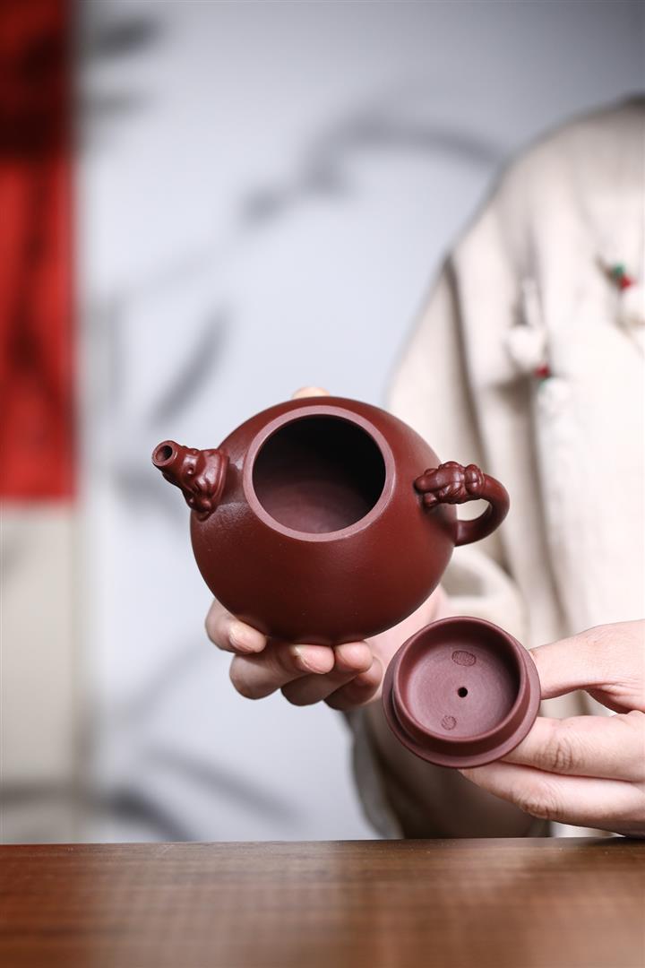 340cc龍骨金砂高溫柴燒百福提梁遇水變色泡茶壺POT9630