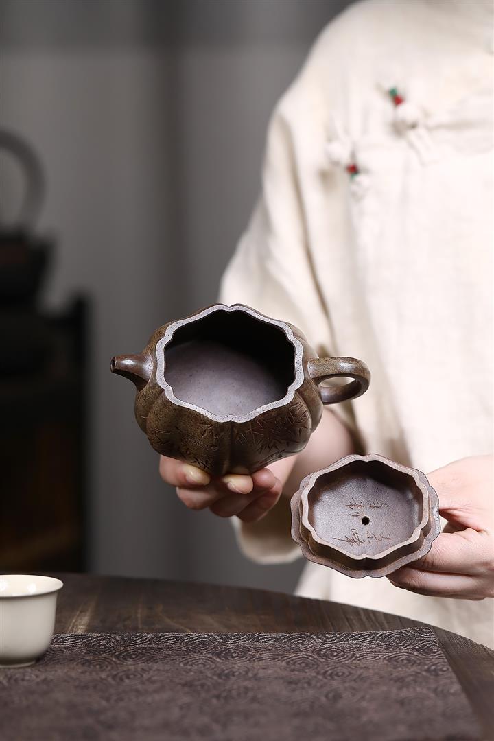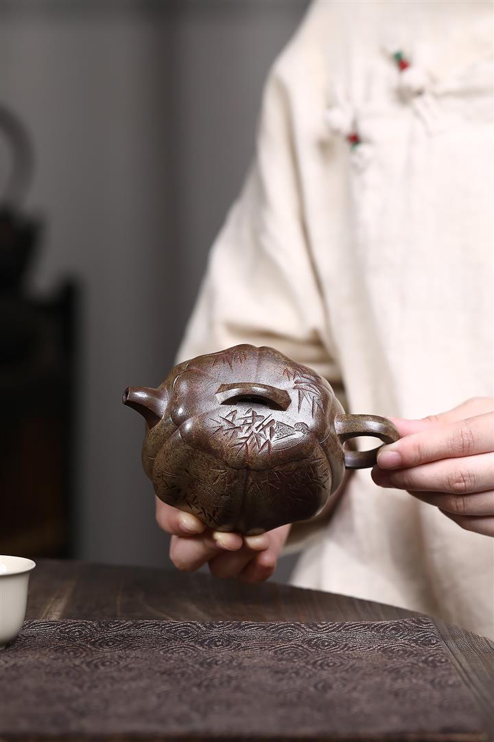【作品介紹】此款壺形線條流暢,壺把,壺嘴,壺身壹氣呵成栩栩如生,是收藏把玩的好壺,泥料色澤古樸典雅,日久使用,漸露鋒芒,養成變化快,溫潤莊重,用其泡茶,使用的年代久,壺身就溫潤,泡出來的茶湯也就醇郁芳馨。