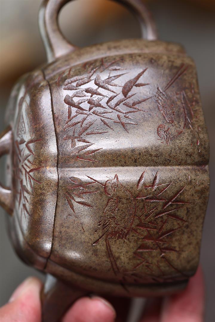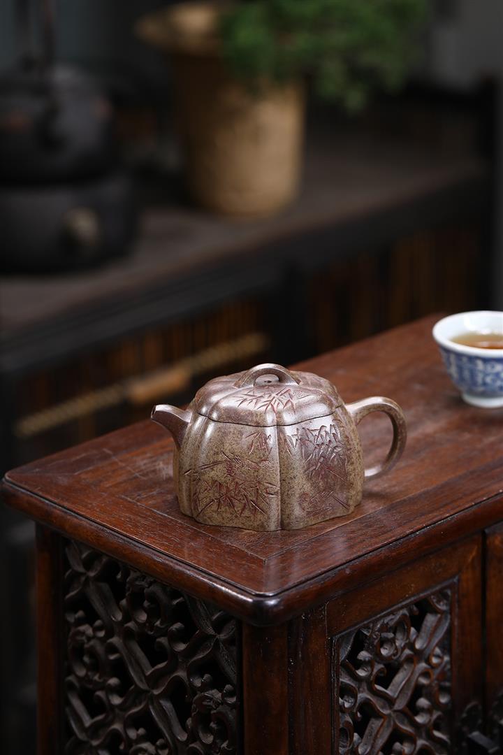150cc原礦降坡泥四方竹節茶壺POT8961