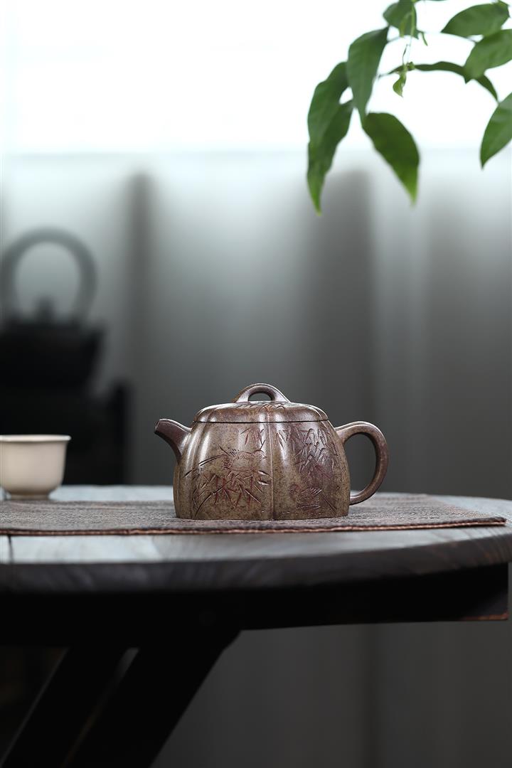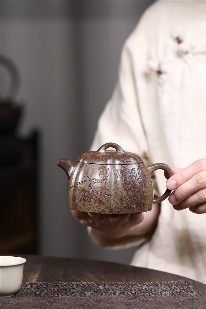 340cc原礦龍骨金砂報春-鏤空觀音茶壺POT8965