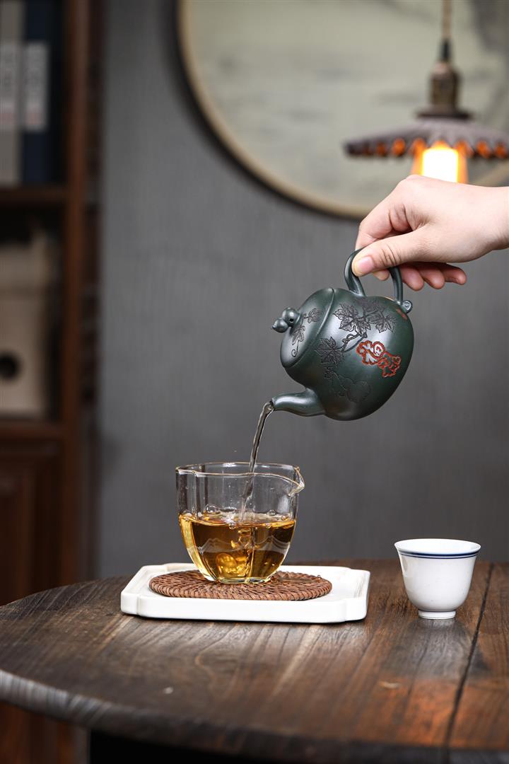 【泥料特點】砂土氣重,似淳實農民,日久使用,漸露鋒芒,養成變化,溫潤莊重。紫砂是壹種雙重氣孔結構的多孔性材質,氣孔微細,密度高。用紫砂壺沏茶,不失原味,且香不渙散,得茶之真香真味。紫砂使用越久,壺身色澤越發光亮照人,氣韻溫雅。紫砂壺長久使用器身會因撫摸擦拭,變得越發溫潤光澤。