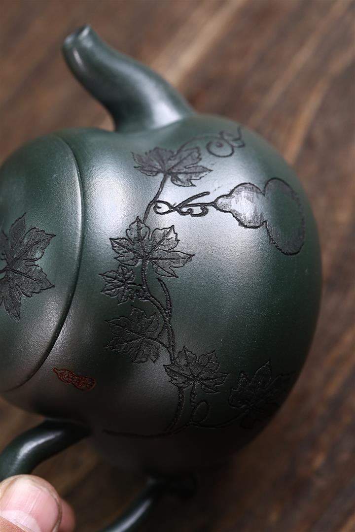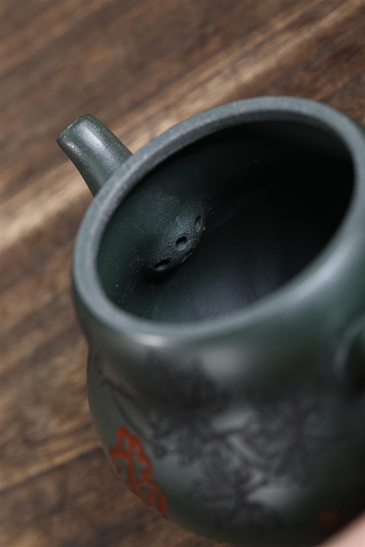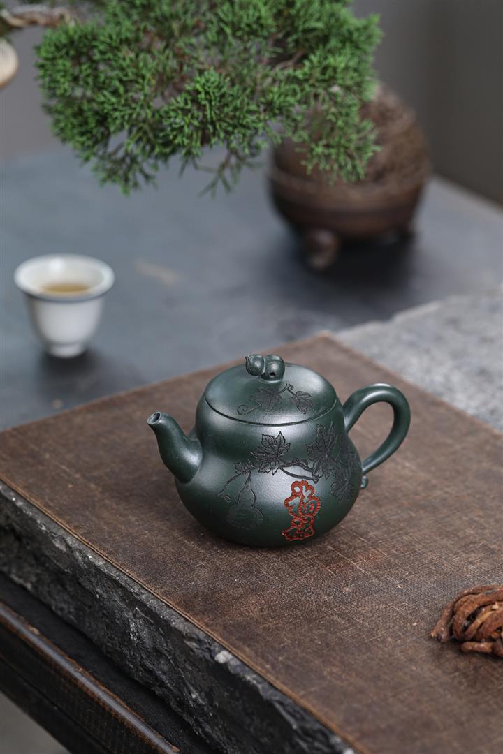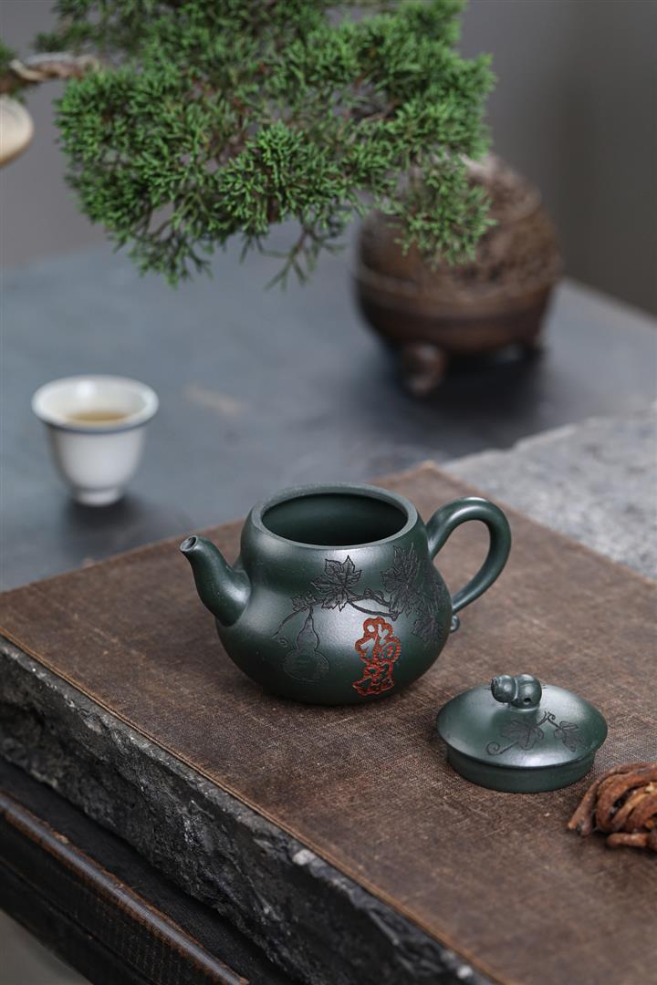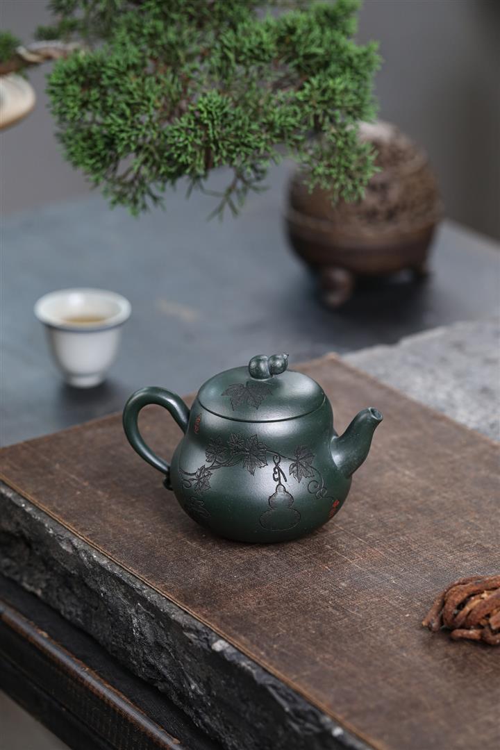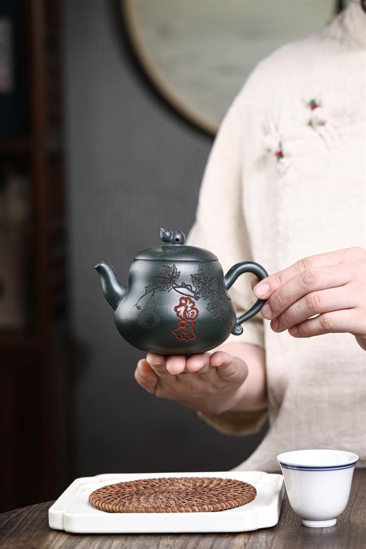 280cc原礦墨綠泥福祿茶壺POT8884