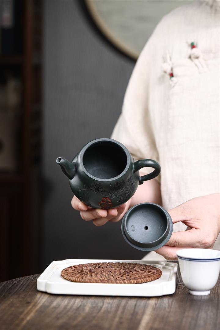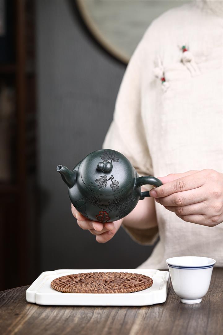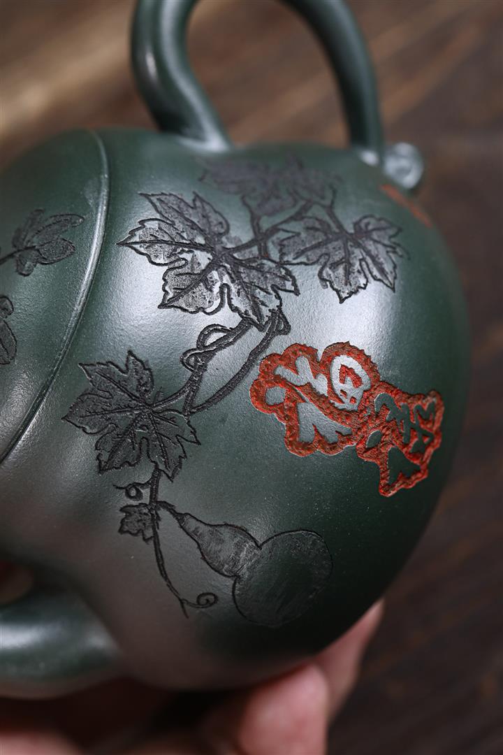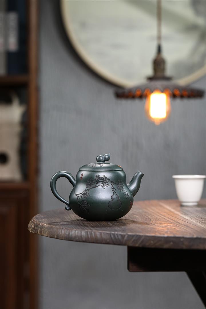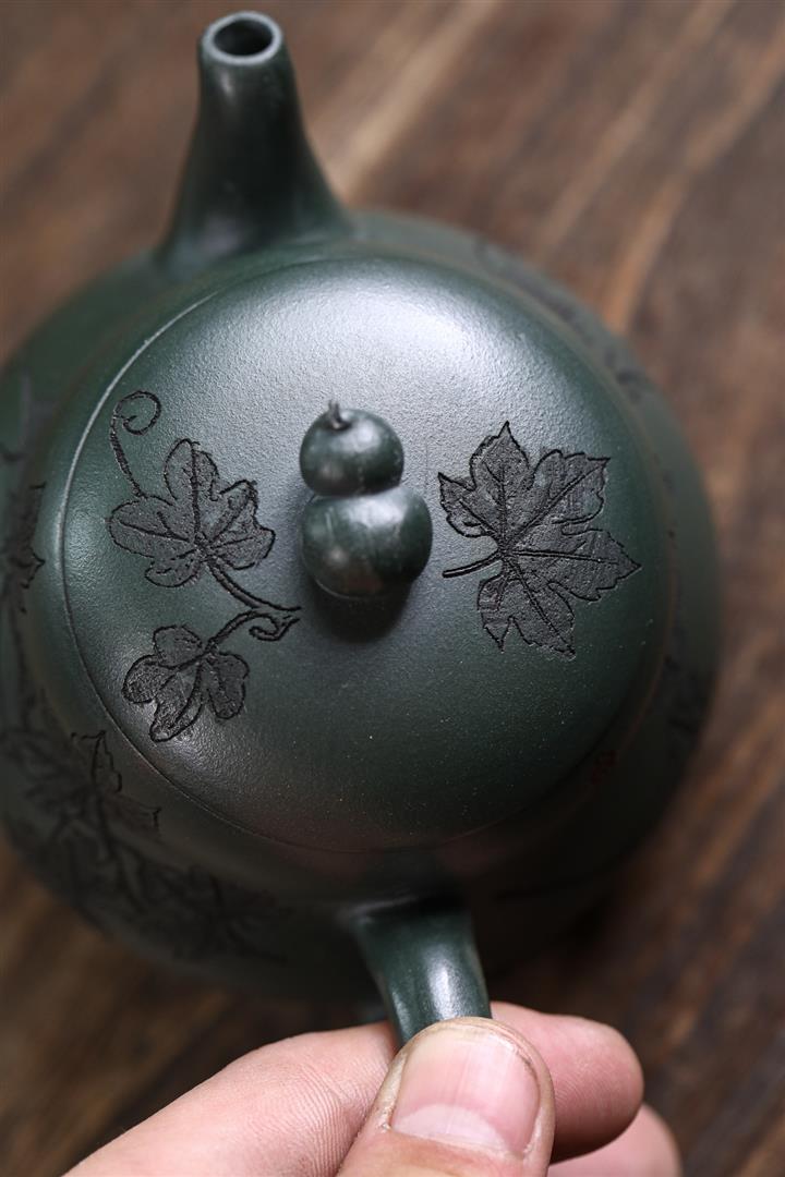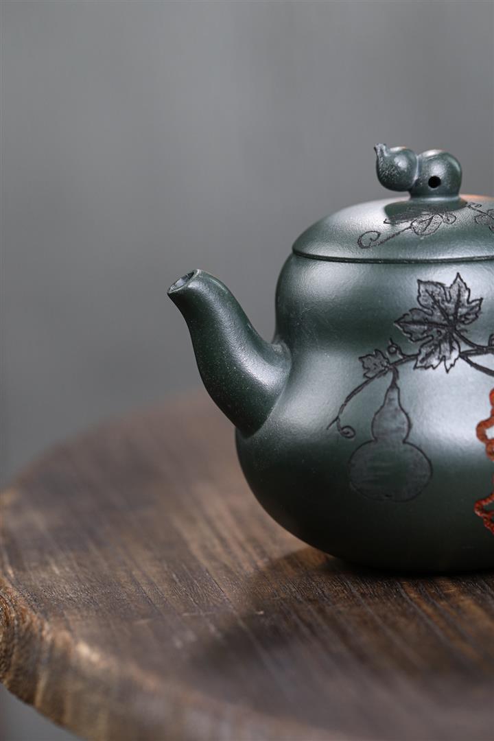 280cc原礦墨綠泥福祿茶壺POT8884