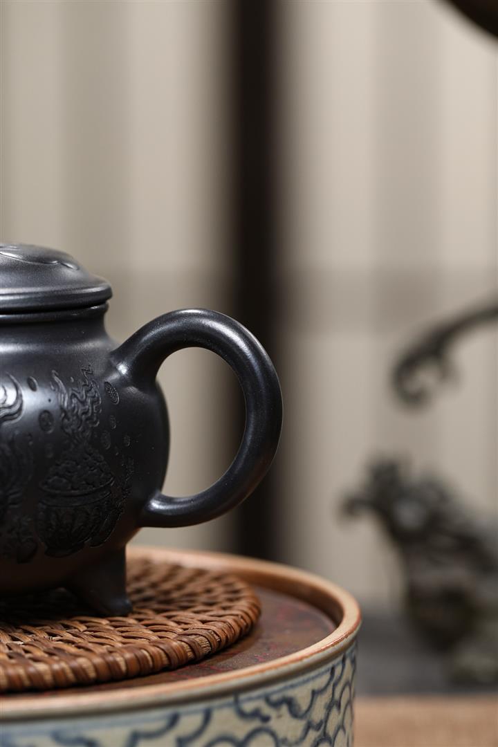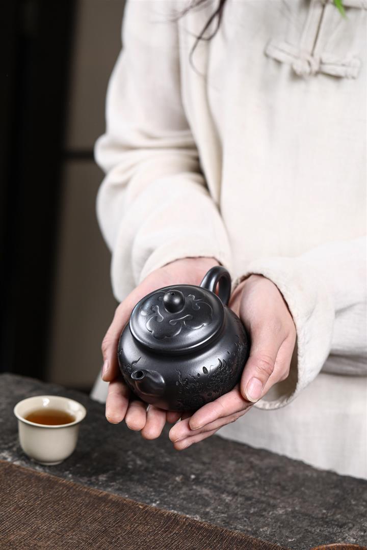 【作品介紹】此款壺形線條流暢,壺把,壺嘴,壺身壹氣呵成栩栩如生,是收藏把玩的好壺,泥料色澤古樸典雅,日久使用,漸露鋒芒,養成變化快,溫潤莊重,用其泡茶,使用的年代久,壺身就溫潤,泡出來的茶湯也就醇郁芳馨。