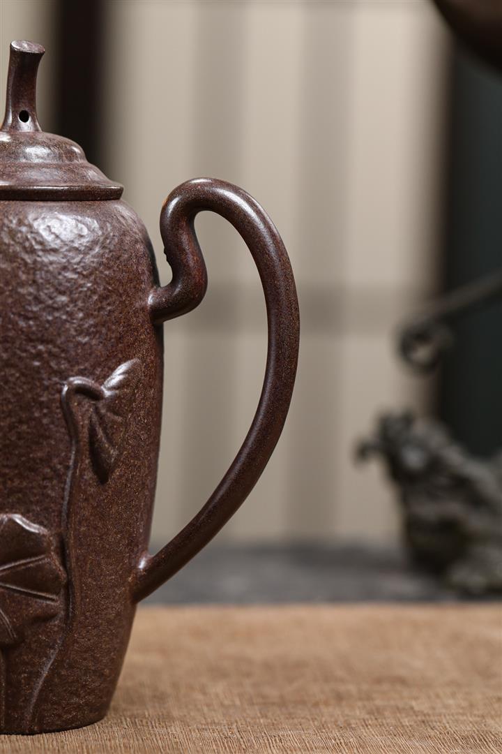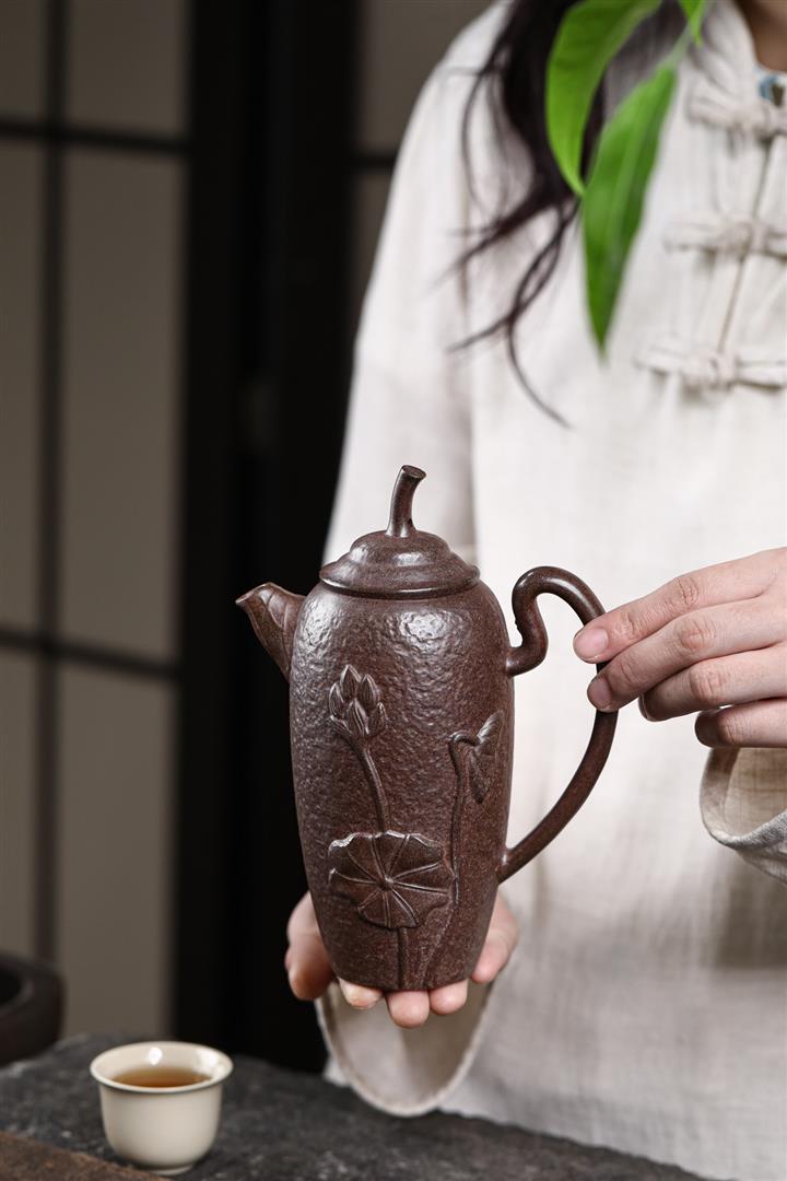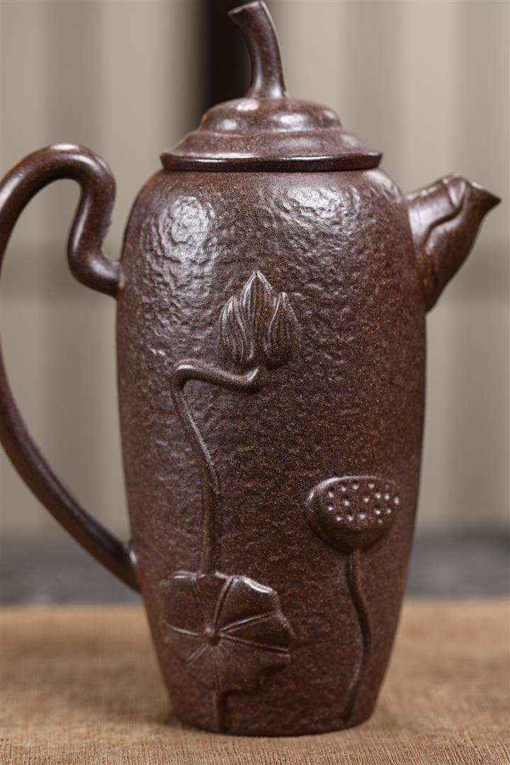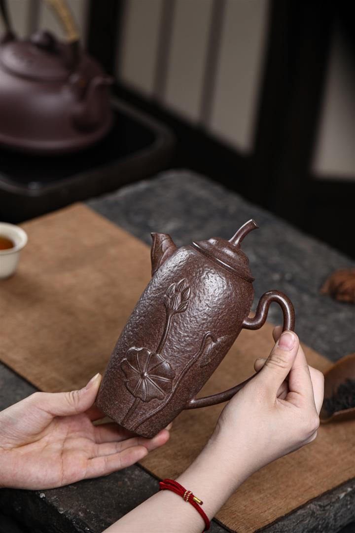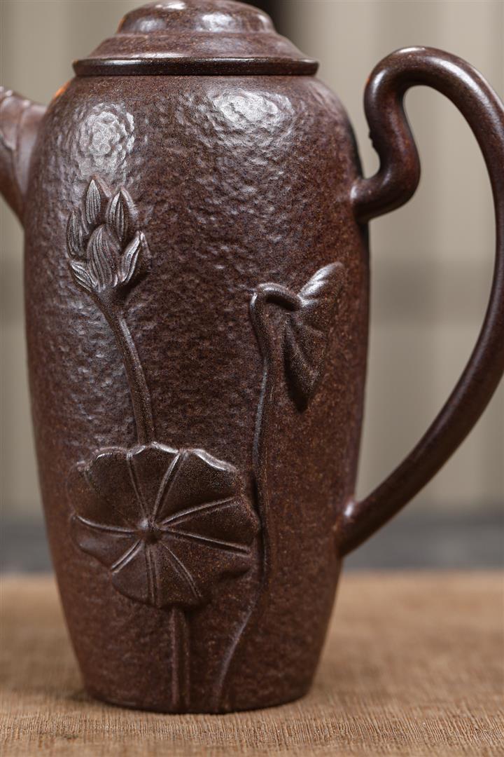 480cc原礦紫泥繪刻荷花汲思茶壺POT8886