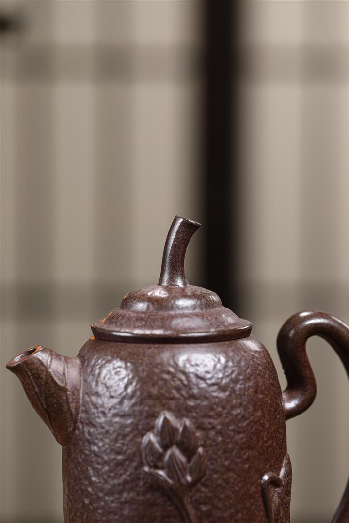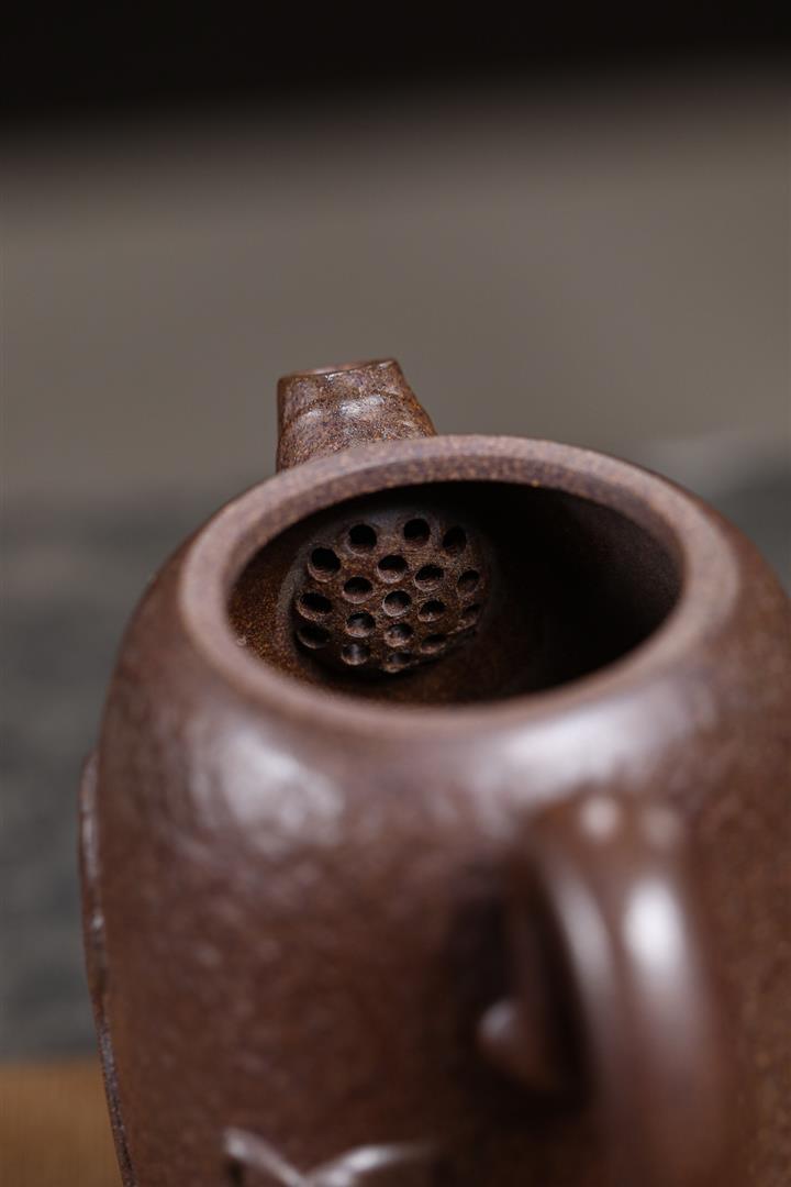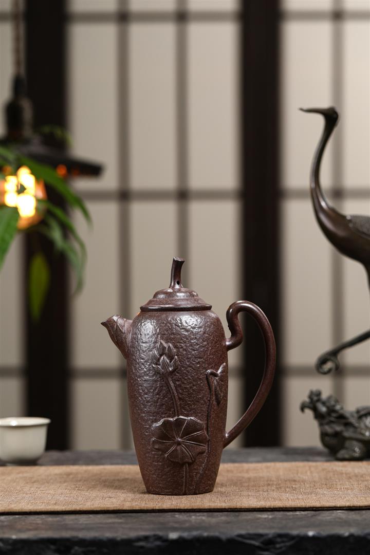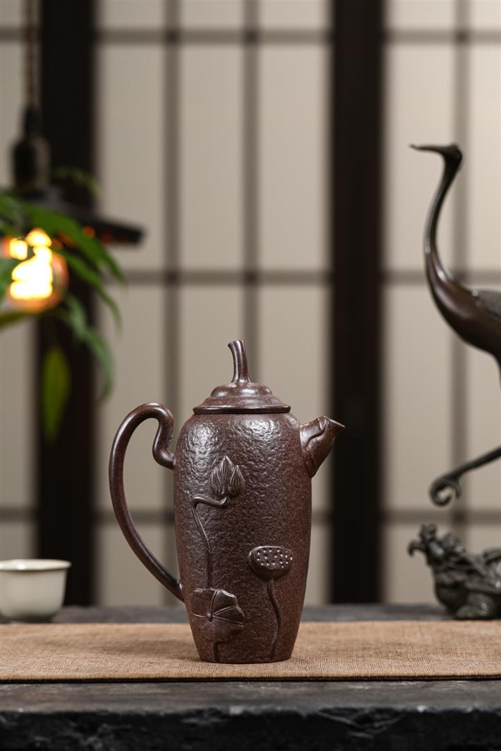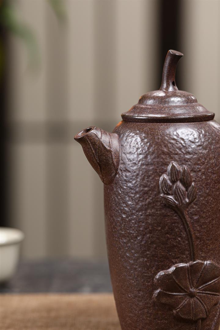 480cc原礦紫泥繪刻荷花汲思茶壺POT8886