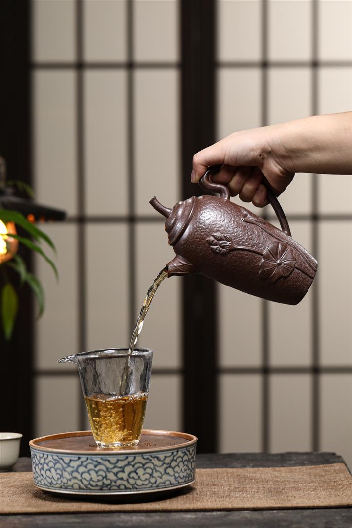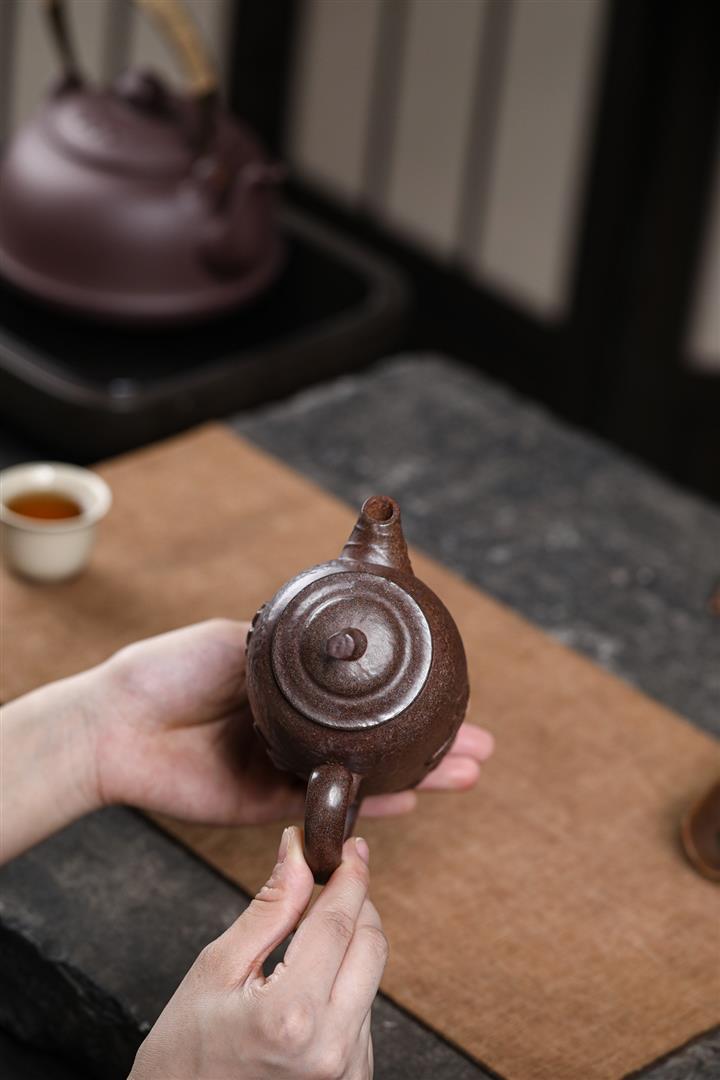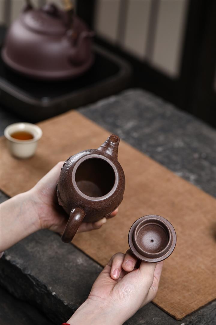 【泥料特點】砂土氣重,似淳實農民,日久使用,漸露鋒芒,養成變化,溫潤莊重。紫砂是壹種雙重氣孔結構的多孔性材質,氣孔微細,密度高。用紫砂壺沏茶,不失原味,且香不渙散,得茶之真香真味。紫砂使用越久,壺身色澤越發光亮照人,氣韻溫雅。紫砂壺長久使用器身會因撫摸擦拭,變得越發溫潤光澤。