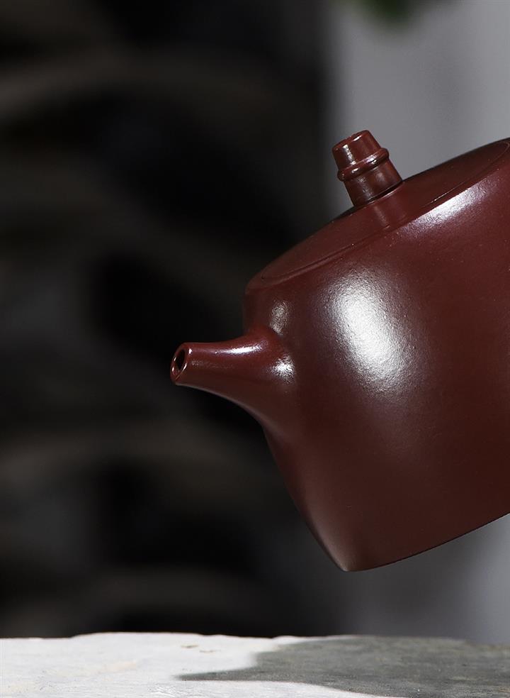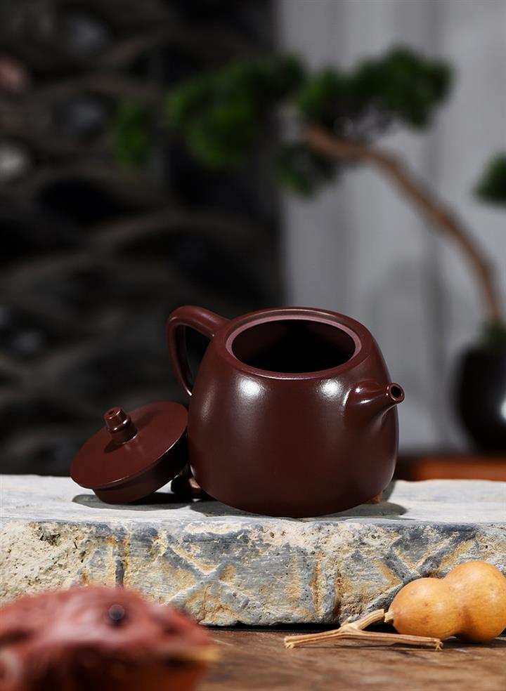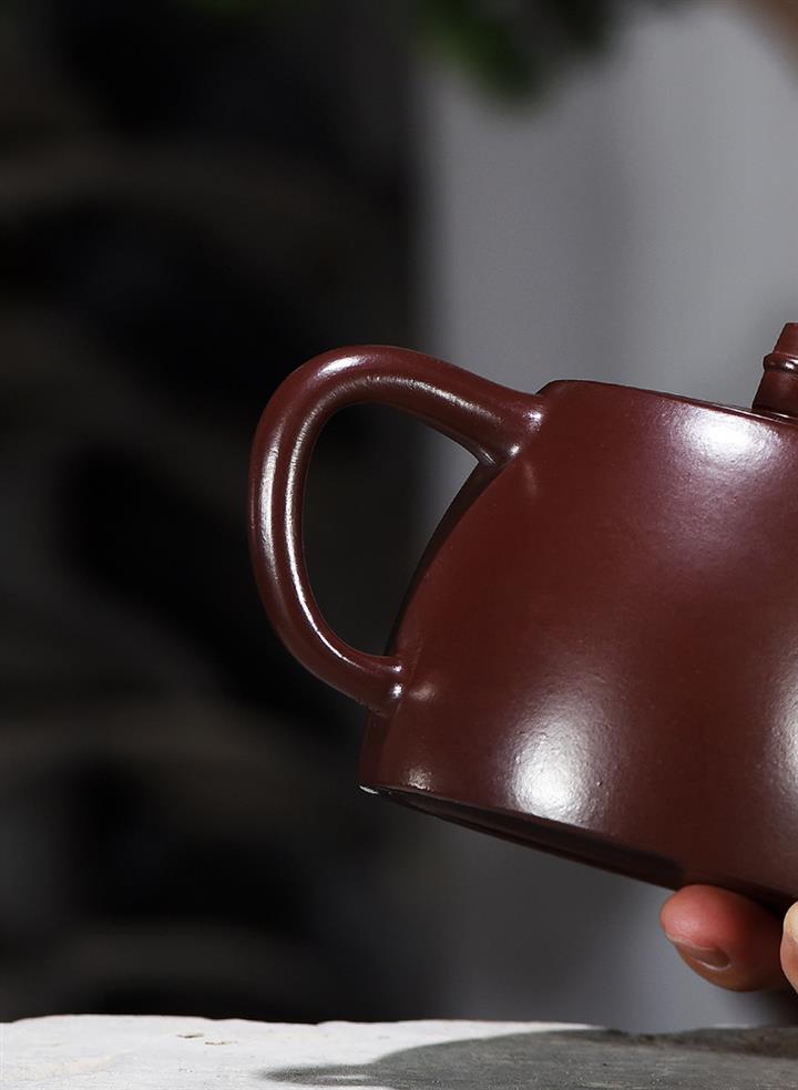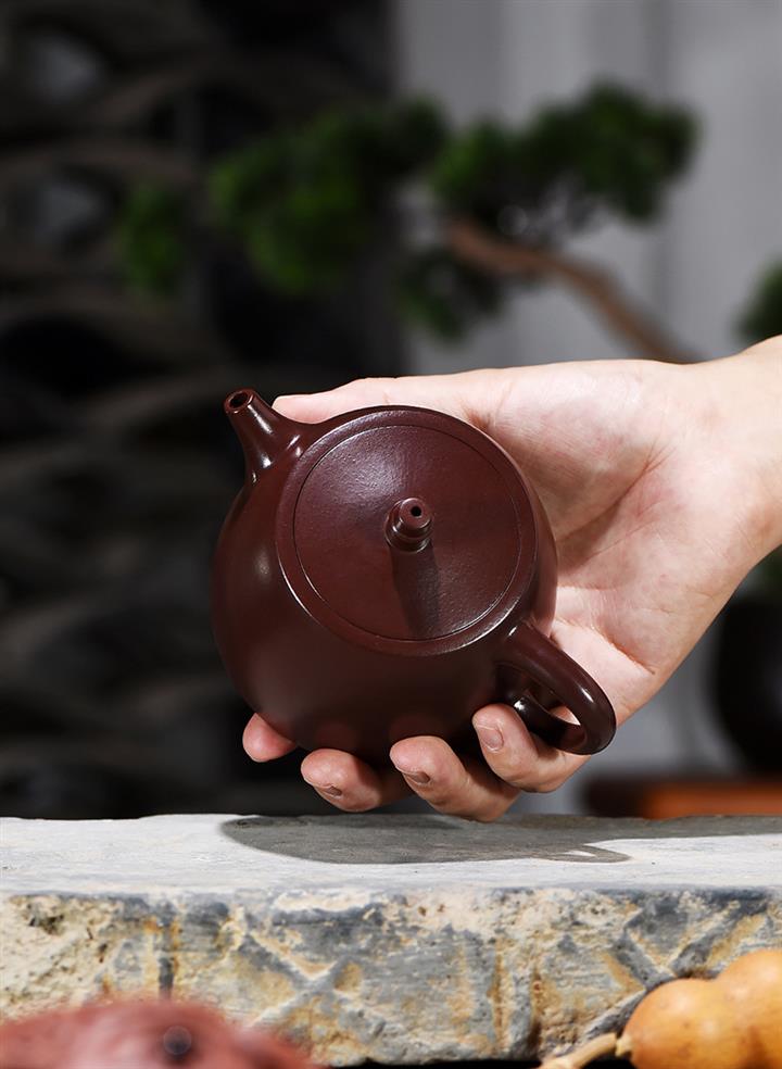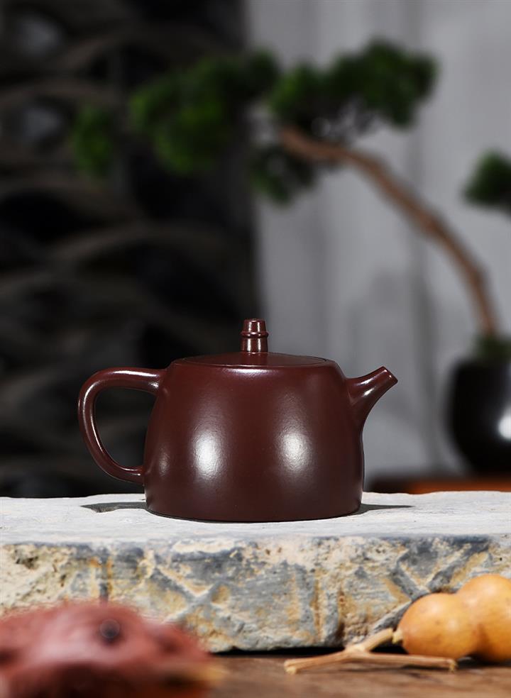 【泥料特點】砂土氣重,似淳實農民,日久使用,漸露鋒芒,養成變化,溫潤莊重。紫砂是壹種雙重氣孔結構的多孔性材質,氣孔微細,密度高。用紫砂壺沏茶,不失原味,且香不渙散,得茶之真香真味。紫砂使用越久,壺身色澤越發光亮照人,氣韻溫雅。紫砂壺長久使用器身會因撫摸擦拭,變得越發溫潤光澤。