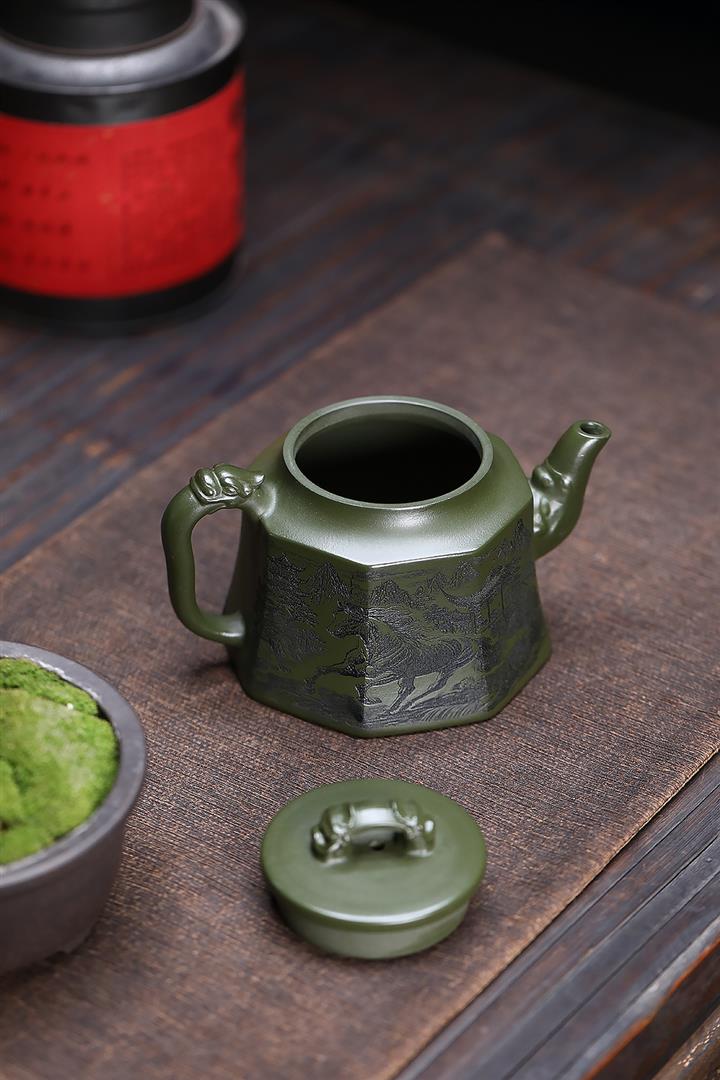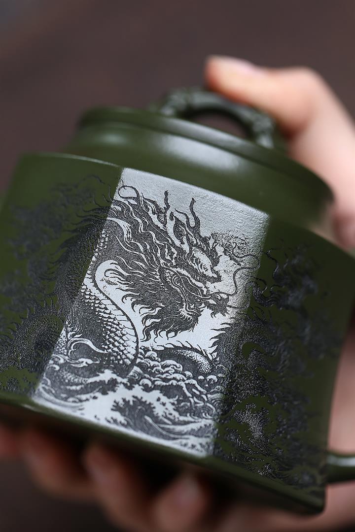 350cc原礦民國綠泥八方龍權泡茶壺POT8891