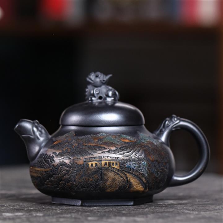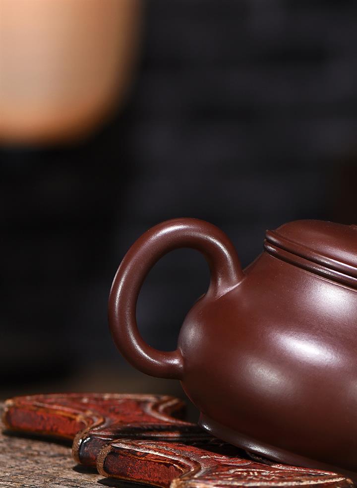 【作品介紹】此款壺形線條流暢,壺把,壺嘴,壺身壹氣呵成栩栩如生,是收藏把玩的好壺,泥料色澤古樸典雅,日久使用,漸露鋒芒,養成變化快,溫潤莊重,用其泡茶,使用的年代久,壺身就溫潤,泡出來的茶湯也就醇郁芳馨。