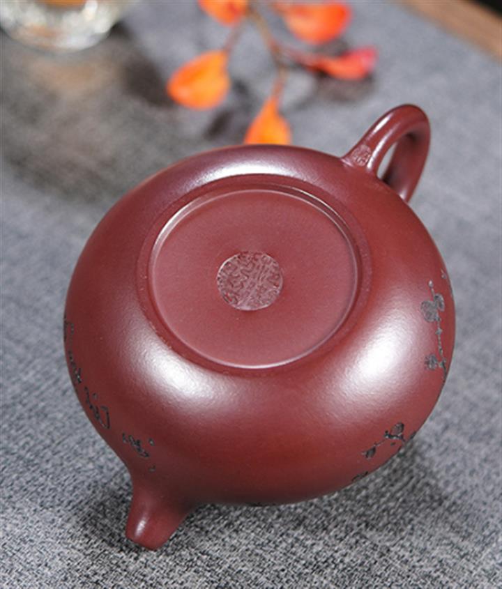 220cc原礦龍血砂刻梅花茶壺POT8902
