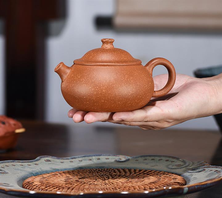 【泥料特點】砂土氣重,似淳實農民,日久使用,漸露鋒芒,養成變化,溫潤莊重。紫砂是壹種雙重氣孔結構的多孔性材質,氣孔微細,密度高。用紫砂壺沏茶,不失原味,且香不渙散,得茶之真香真味。紫砂使用越久,壺身色澤越發光亮照人,氣韻溫雅。紫砂壺長久使用器身會因撫摸擦拭,變得越發溫潤光澤。