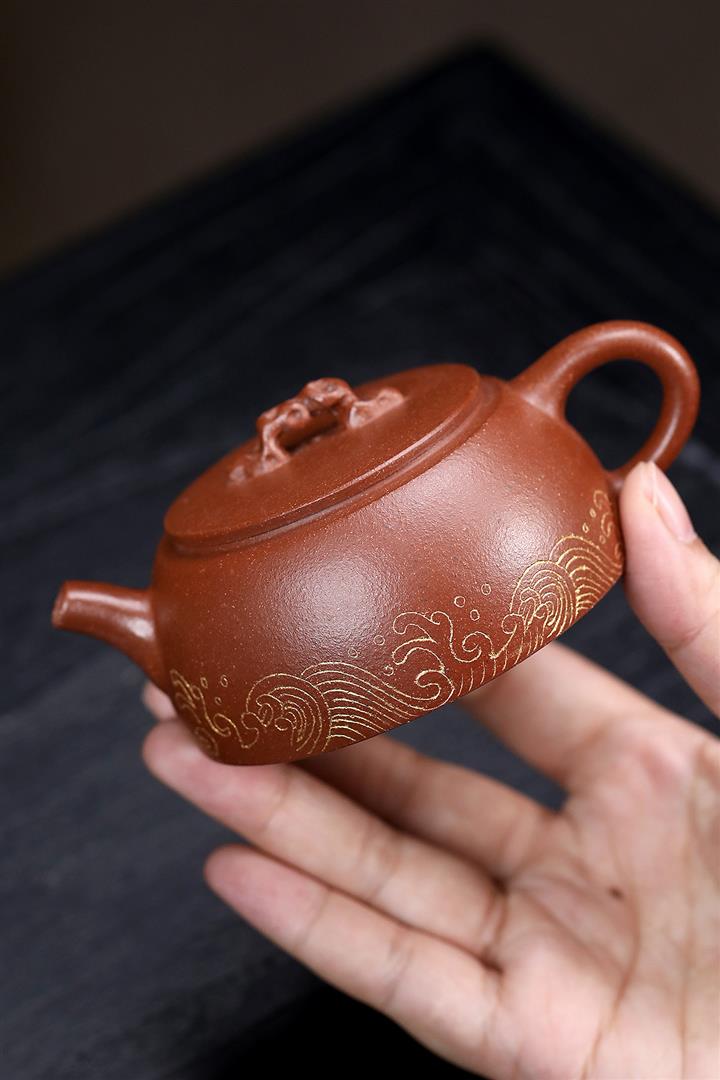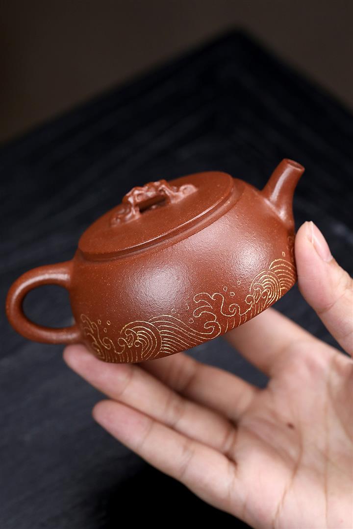 【作品介紹】此款壺形線條流暢,壺把,壺嘴,壺身壹氣呵成栩栩如生,是收藏把玩的好壺,泥料色澤古樸典雅,日久使用,漸露鋒芒,養成變化快,溫潤莊重,用其泡茶,使用的年代久,壺身就溫潤,泡出來的茶湯也就醇郁芳馨。