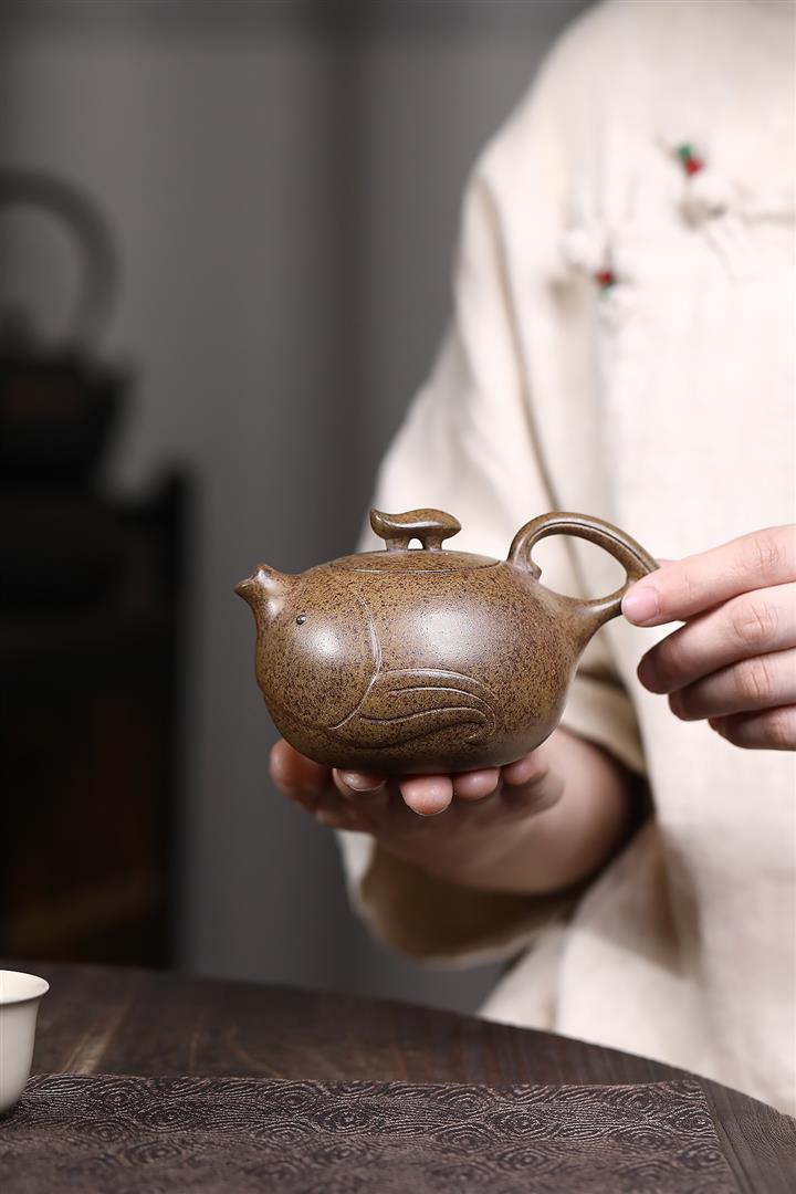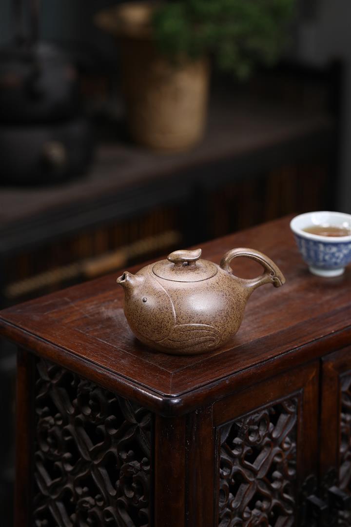【作品介紹】此款壺形線條流暢,壺把,壺嘴,壺身壹氣呵成栩栩如生,是收藏把玩的好壺,泥料色澤古樸典雅,日久使用,漸露鋒芒,養成變化快,溫潤莊重,用其泡茶,使用的年代久,壺身就溫潤,泡出來的茶湯也就醇郁芳馨。