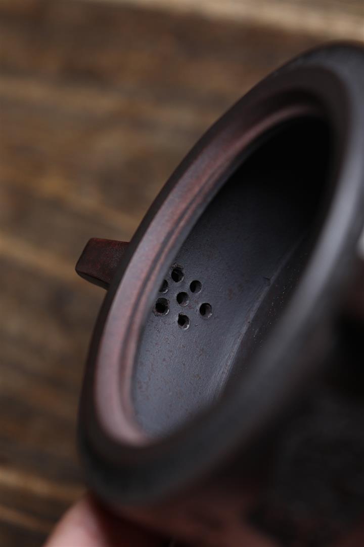 紫泥窯變柴燒炮嘴漢瓦紫砂壺POT5481