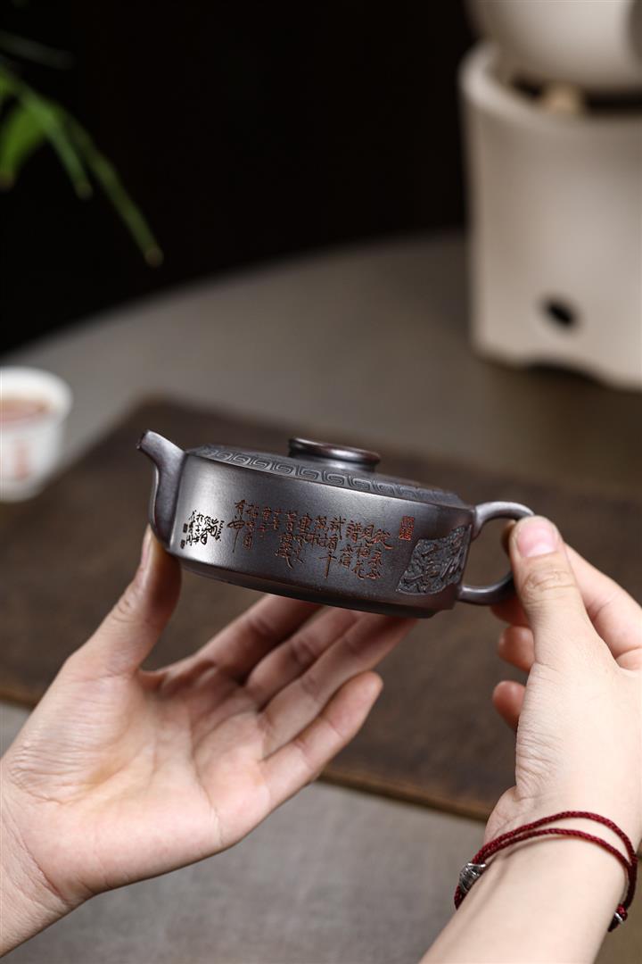 【作品介紹】此款壺形線條流暢,壺把,壺嘴,壺身壹氣呵成栩栩如生,是收藏把玩的好壺,泥料色澤古樸典雅,日久使用,漸露鋒芒,養成變化快,溫潤莊重,用其泡茶,使用的年代久,壺身就溫潤,泡出來的茶湯也就醇郁芳馨。