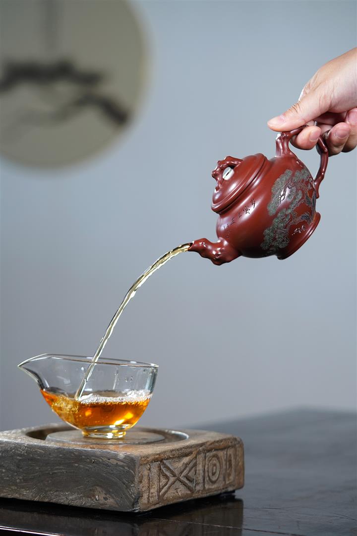 【泥料特點】砂土氣重,似淳實農民,日久使用,漸露鋒芒,養成變化,溫潤莊重。紫砂是壹種雙重氣孔結構的多孔性材質,氣孔微細,密度高。用紫砂壺沏茶,不失原味,且香不渙散,得茶之真香真味。紫砂使用越久,壺身色澤越發光亮照人,氣韻溫雅。紫砂壺長久使用器身會因撫摸擦拭,變得越發溫潤光澤。