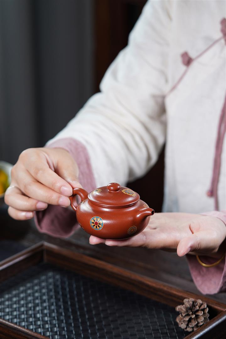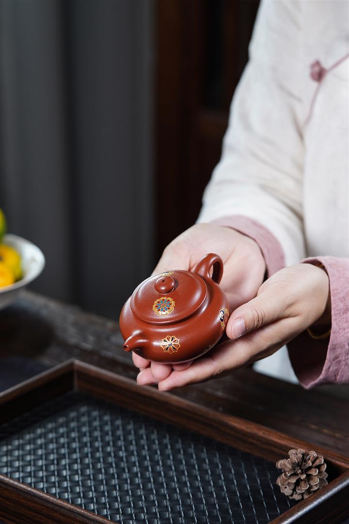 140cc原礦大紅袍描金繡球仿古茶壺POT8923