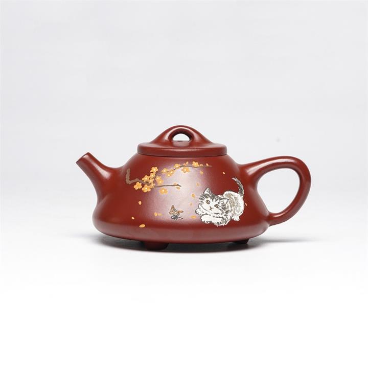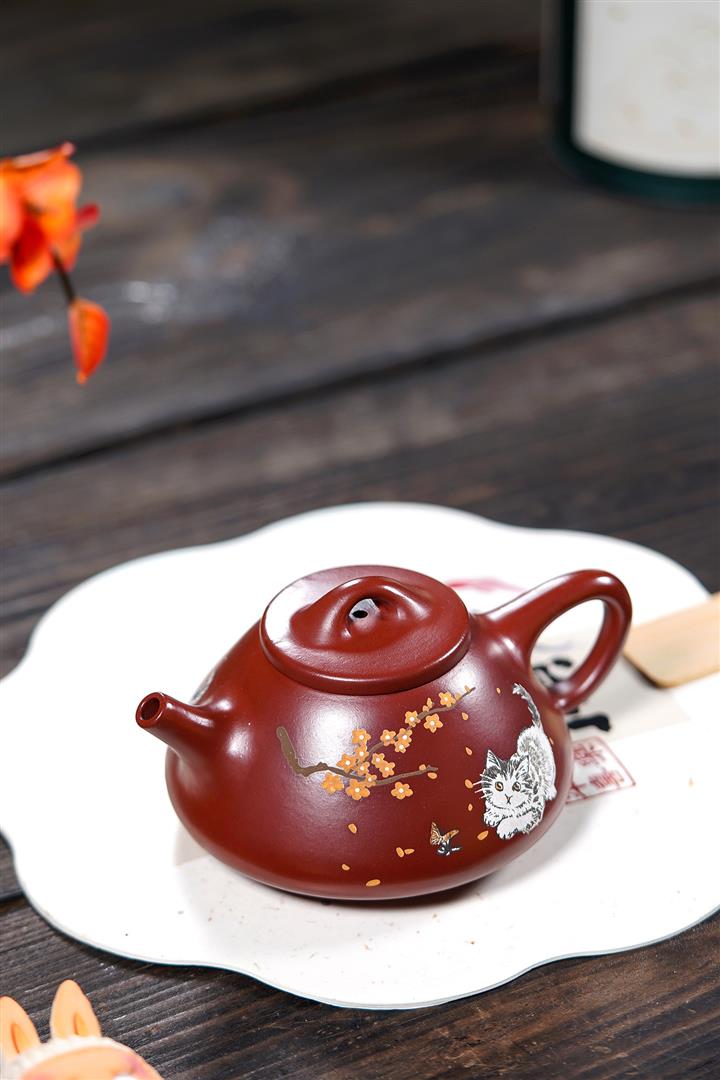 原礦紫泥泥繪石瓢紫砂壺POT5548